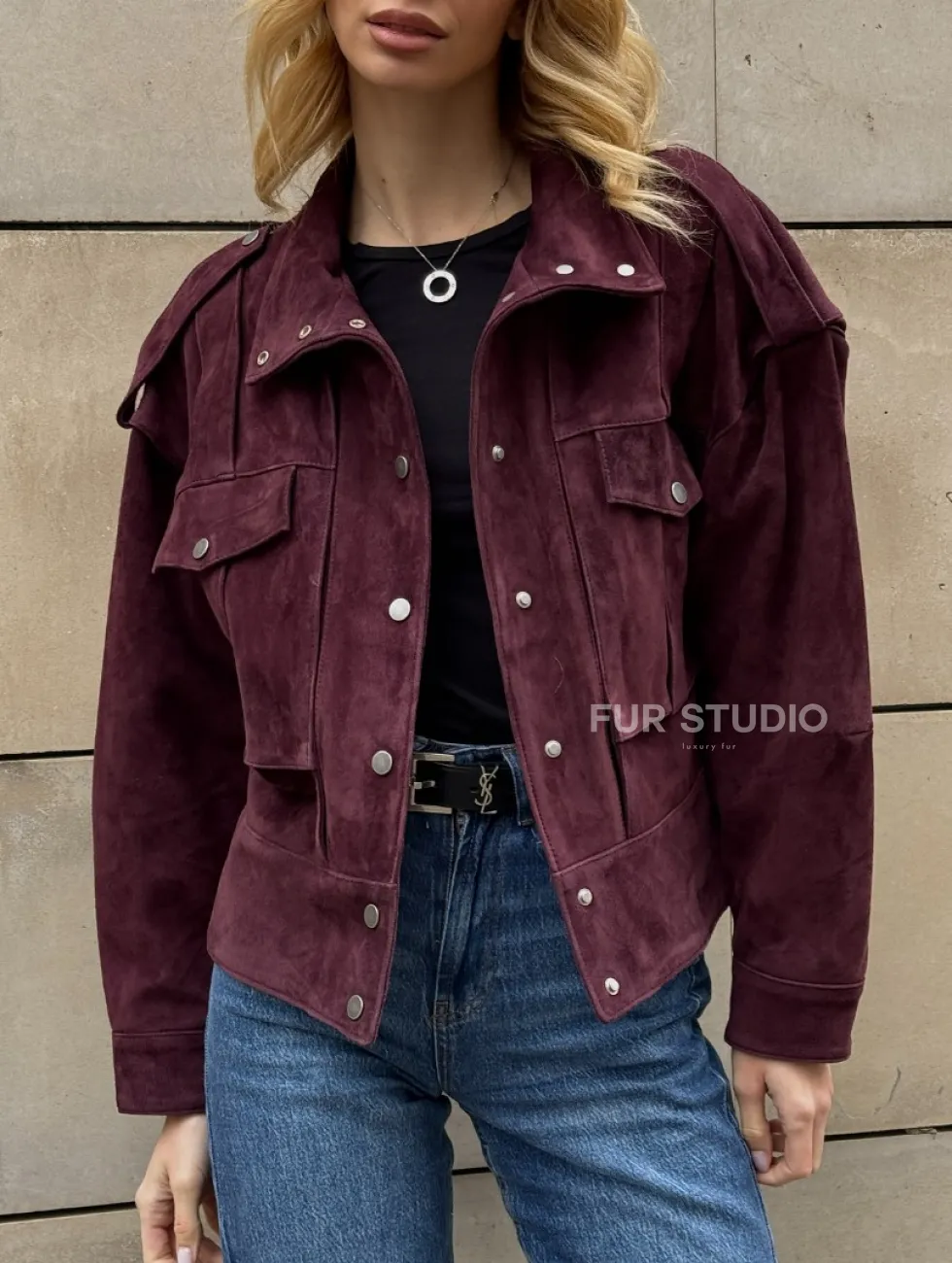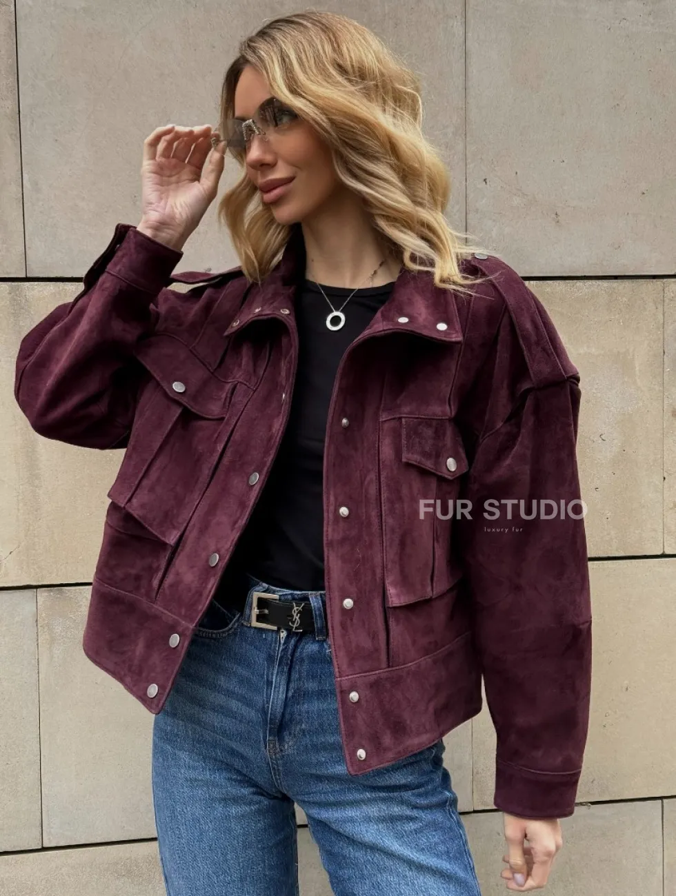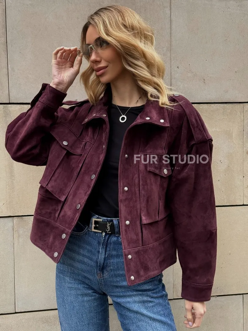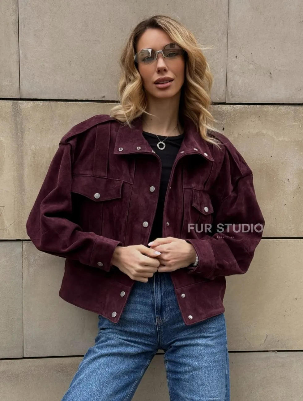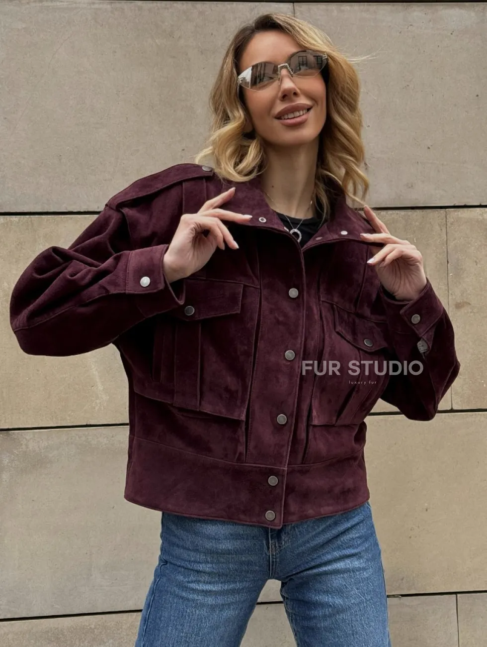 Восхититесь элегантностью и несравненным комфортом с нашей эксклюзивной коллекцией кожаных изделий. Изготовленная из первоклассной натуральной кожи, Винтажная женская повседневная куртка из натуральной замши Burgundy не только согреет вас в прохладные дни, но и подчеркнет ваш изысканный вкус. Уникальный дизайн и высокое качество делают наши представленные образцы идеальным выбором для утончённых образов.