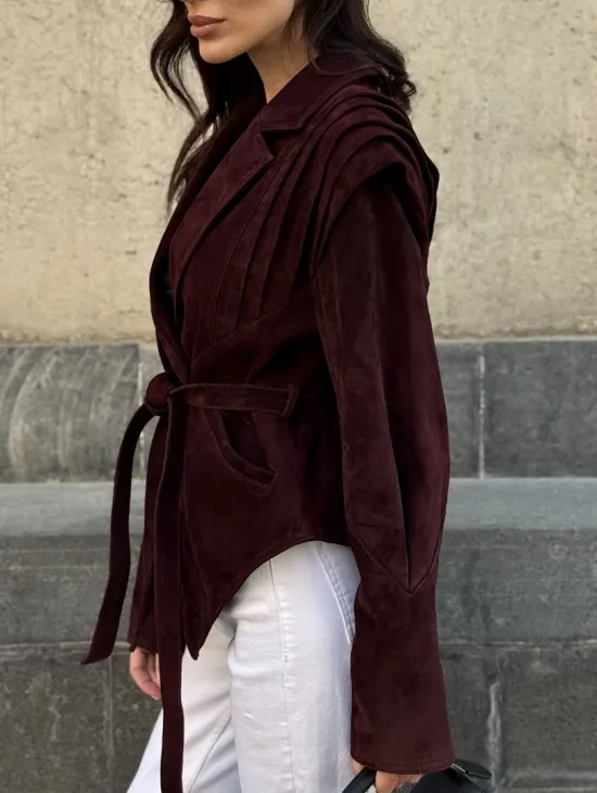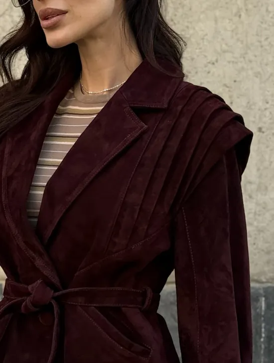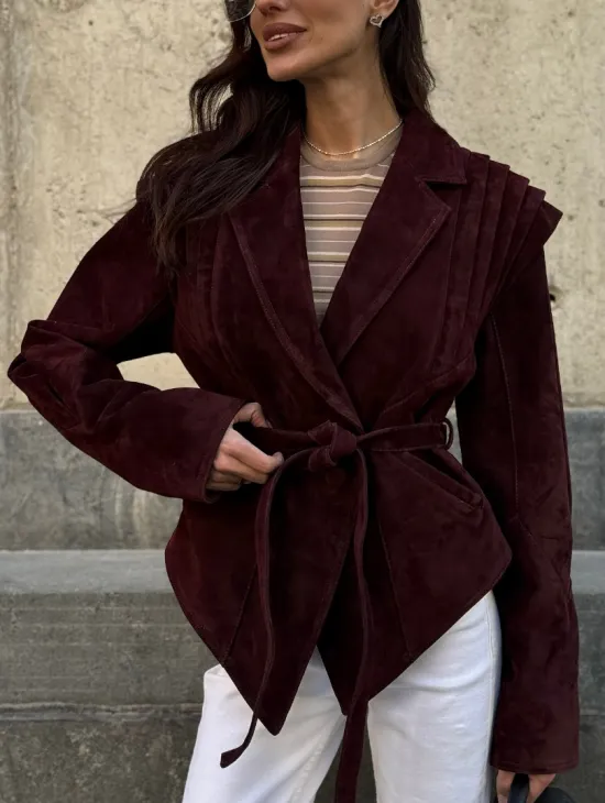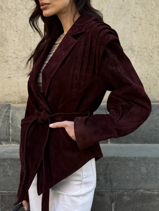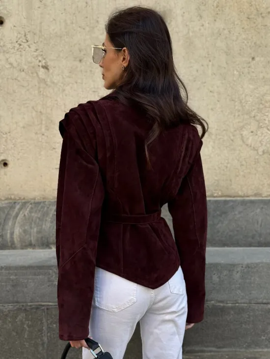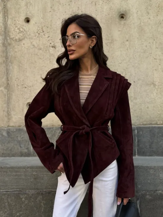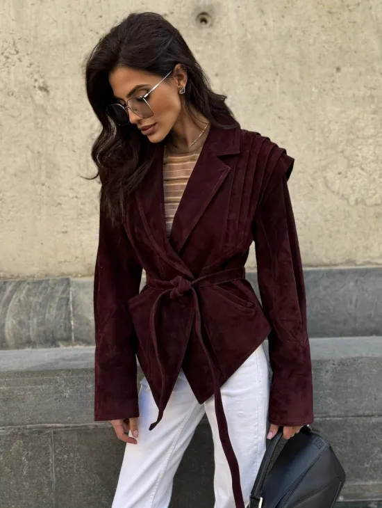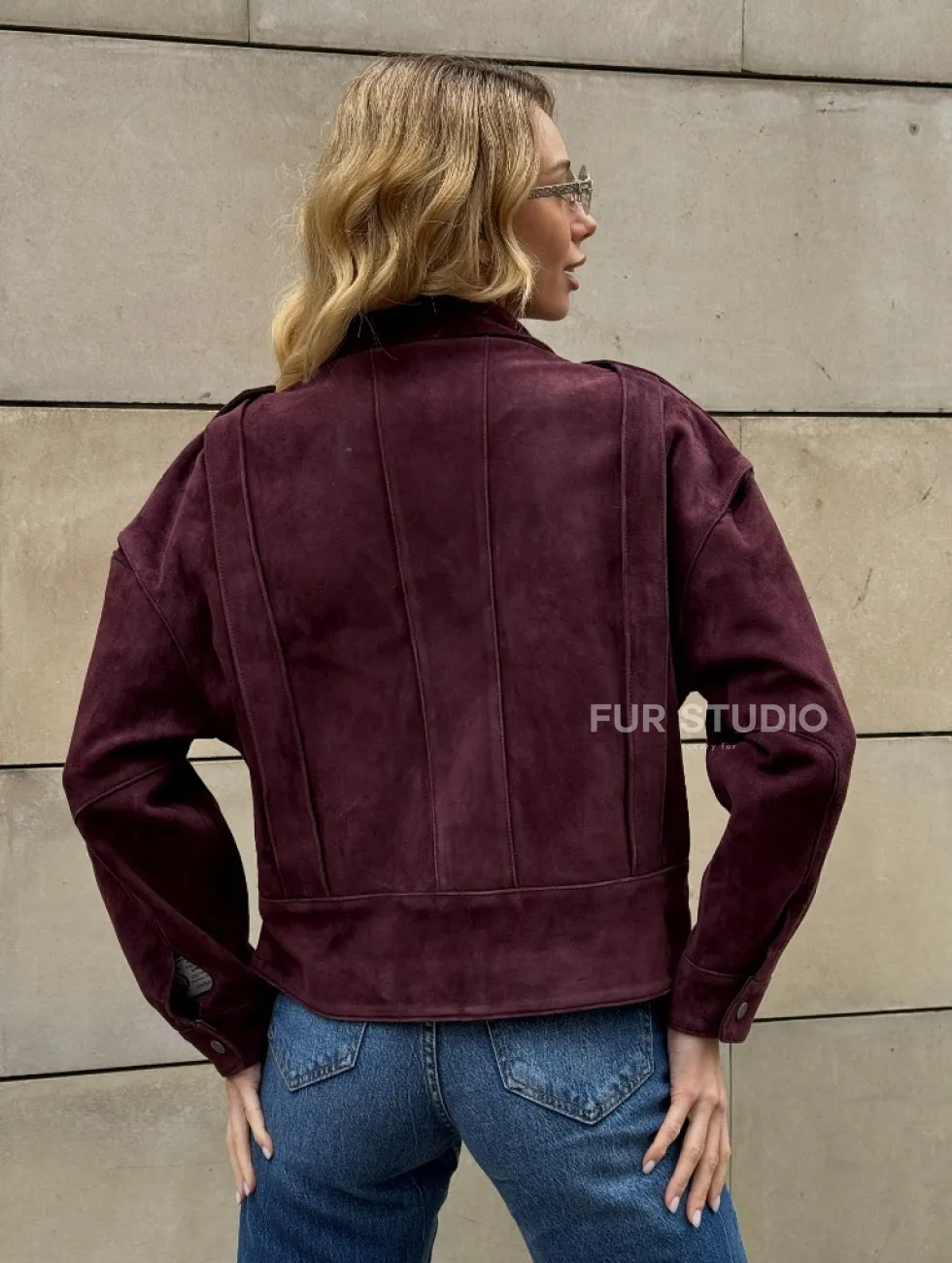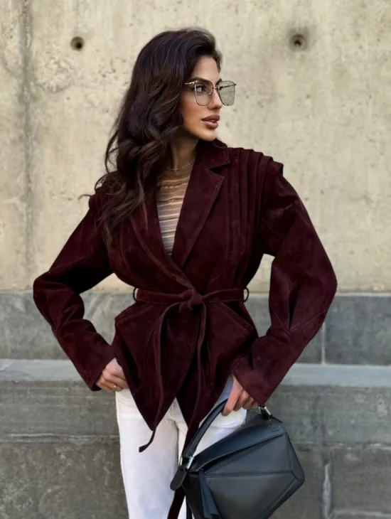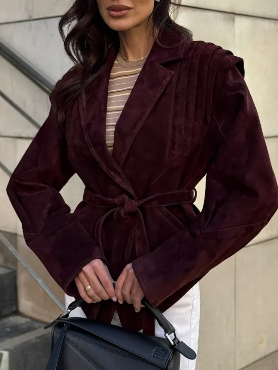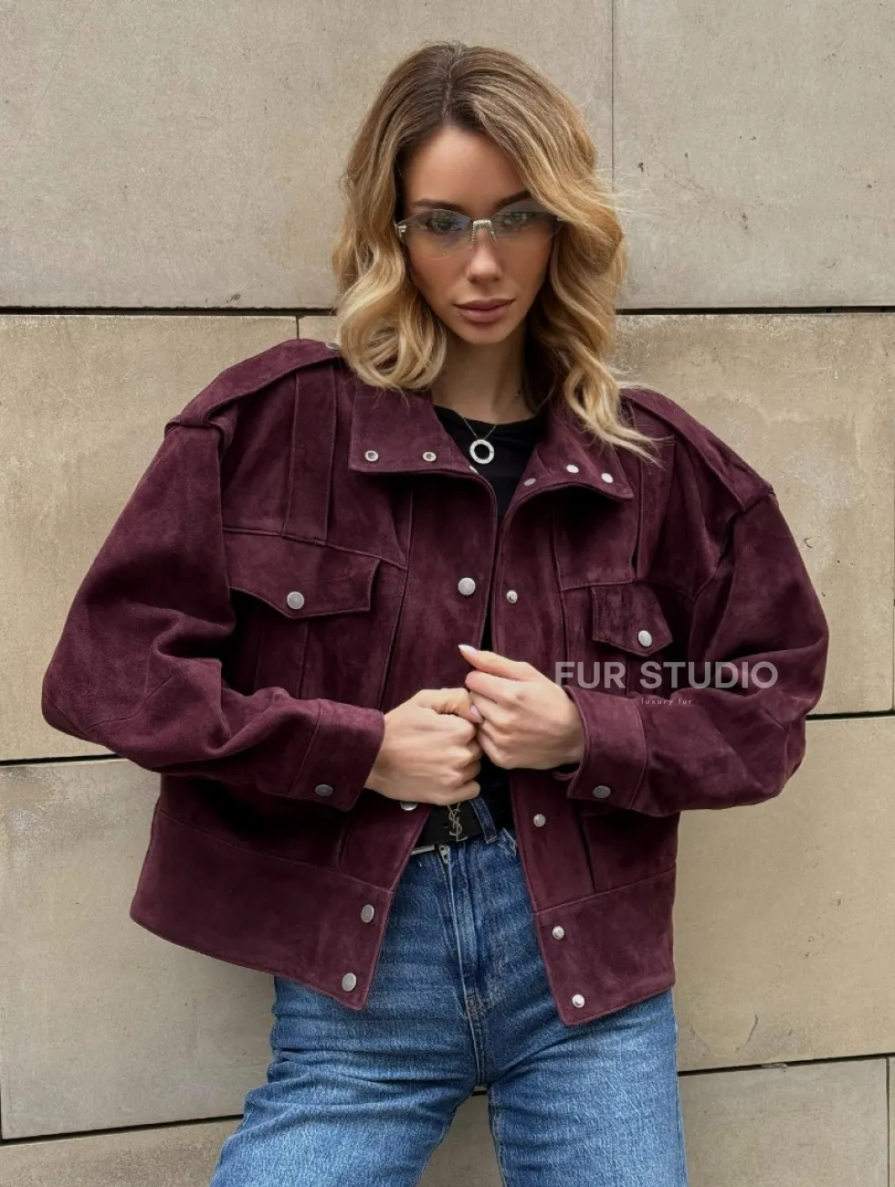Восхититесь элегантностью и несравненным комфортом с нашей эксклюзивной коллекцией кожаных изделий. Изготовленная из первоклассной натуральной кожи, Винтажная женская повседневная куртка из натуральной замши Burgundy не только согреет вас в прохладные дни, но и подчеркнет ваш изысканный вкус. Уникальный дизайн и высокое качество делают наши представленные образцы идеальным выбором для утончённых образов.
