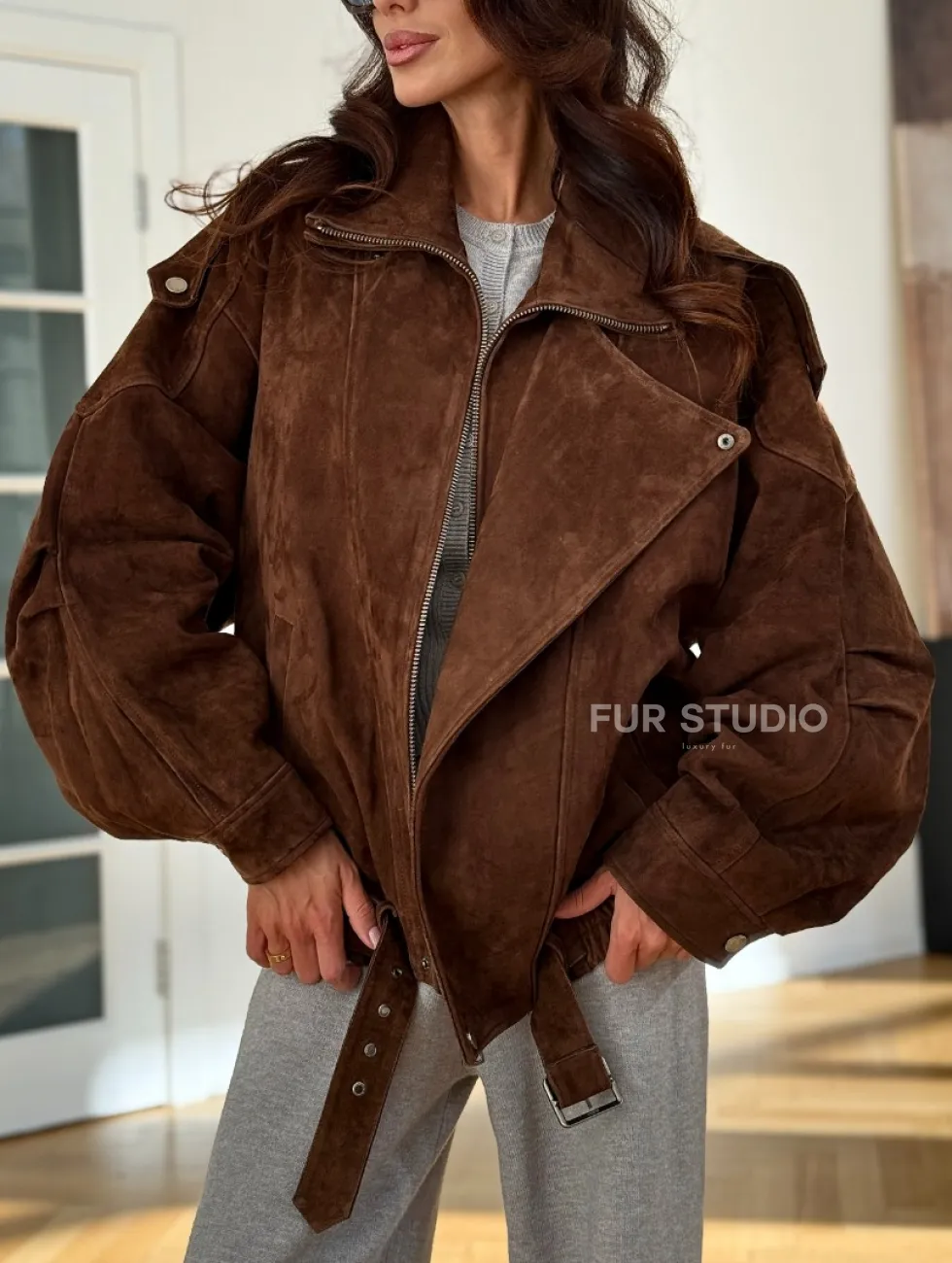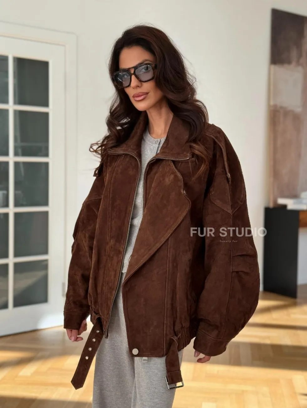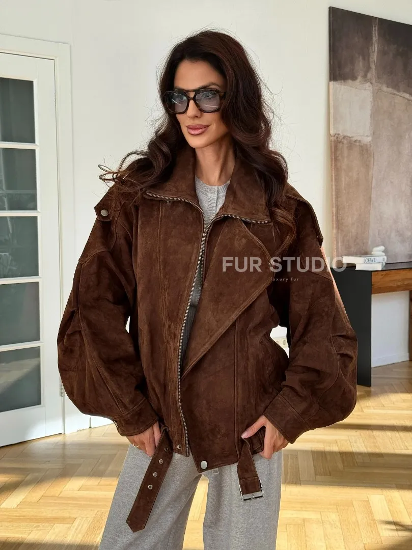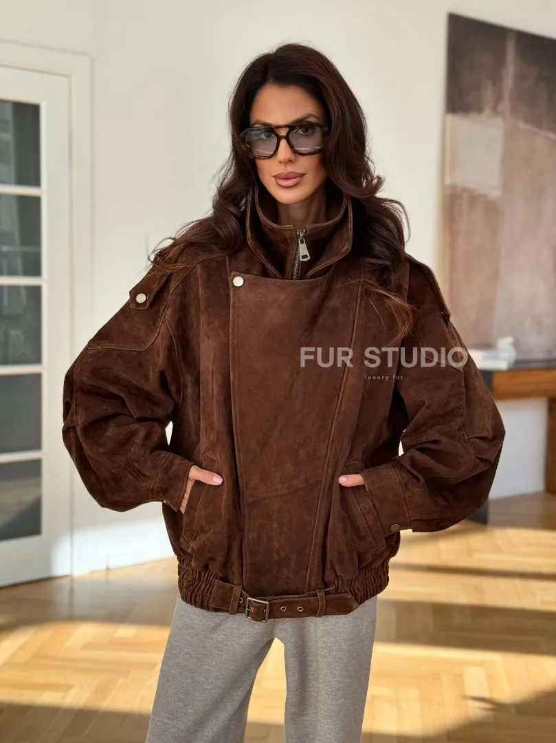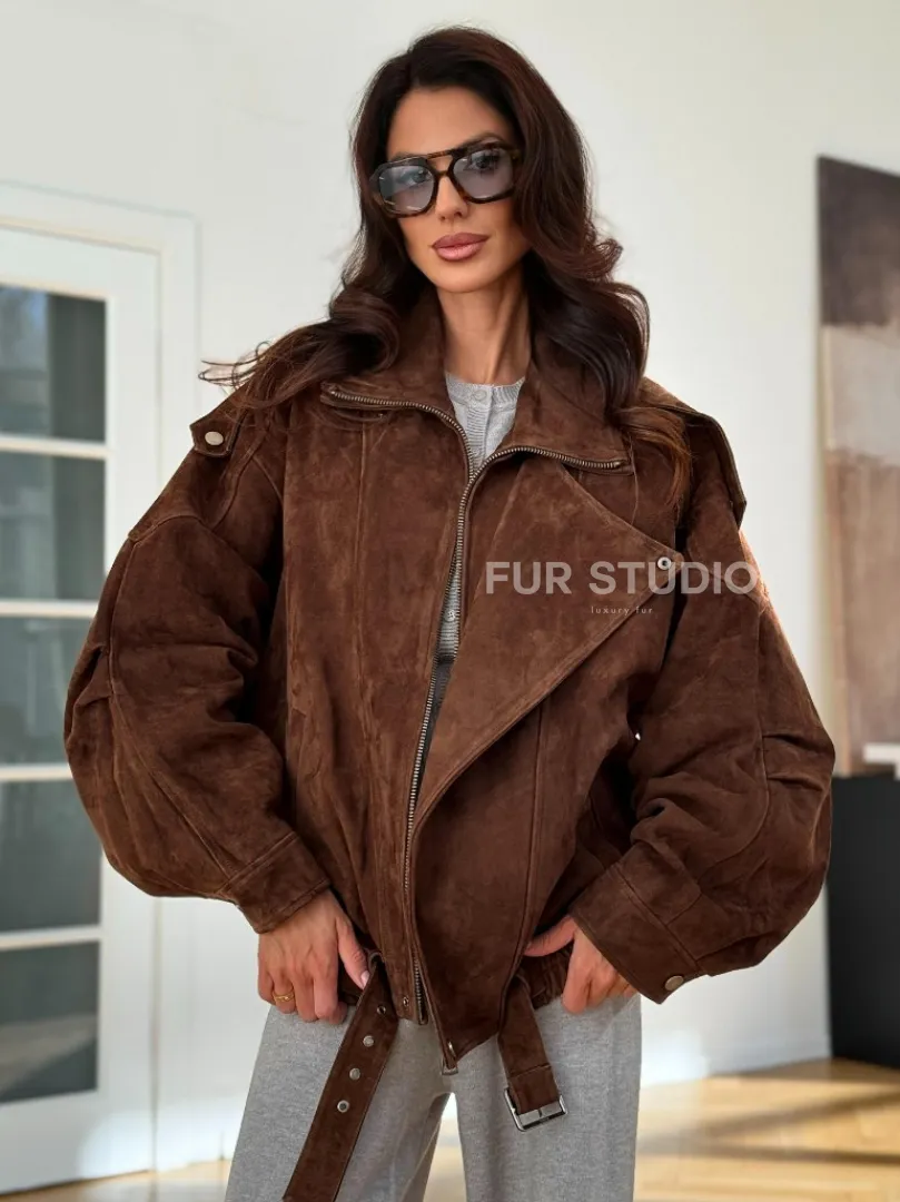 Замшевая куртка женская 2025 доступна для покупки в нашем шоуруме Furs Studio в Москве, где также предоставляется удобная доставка во все города России.