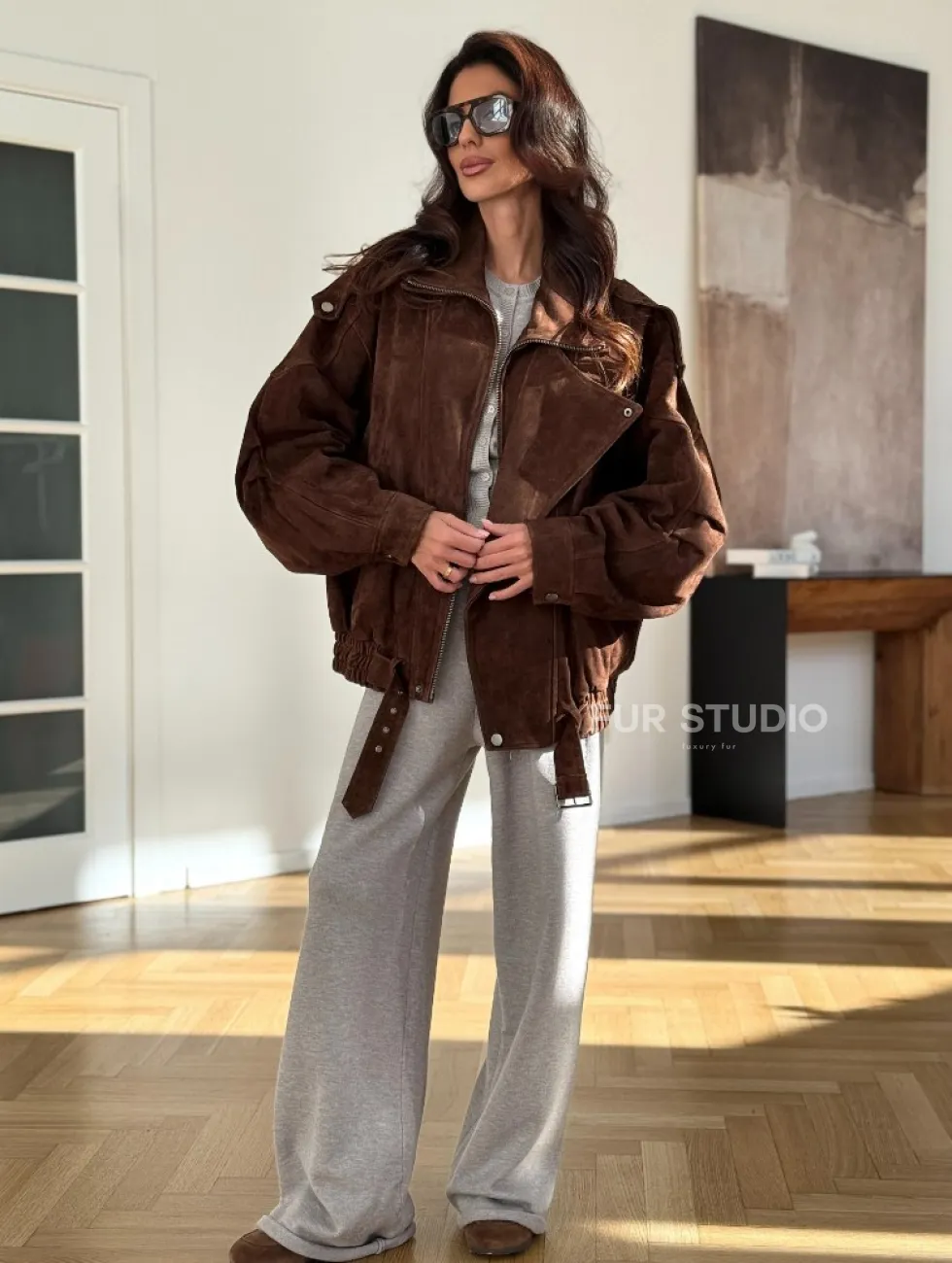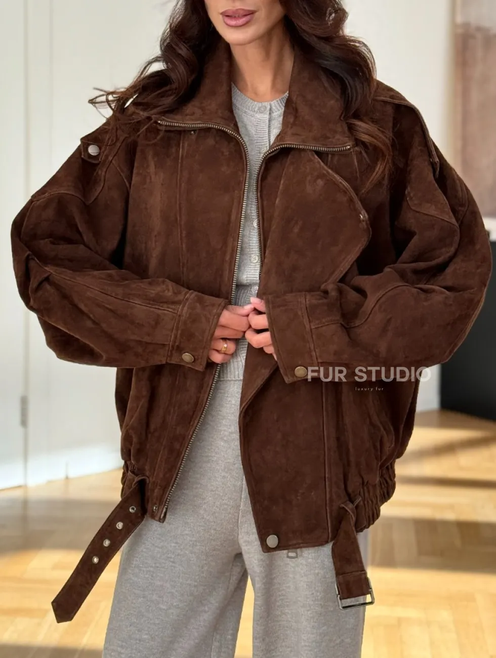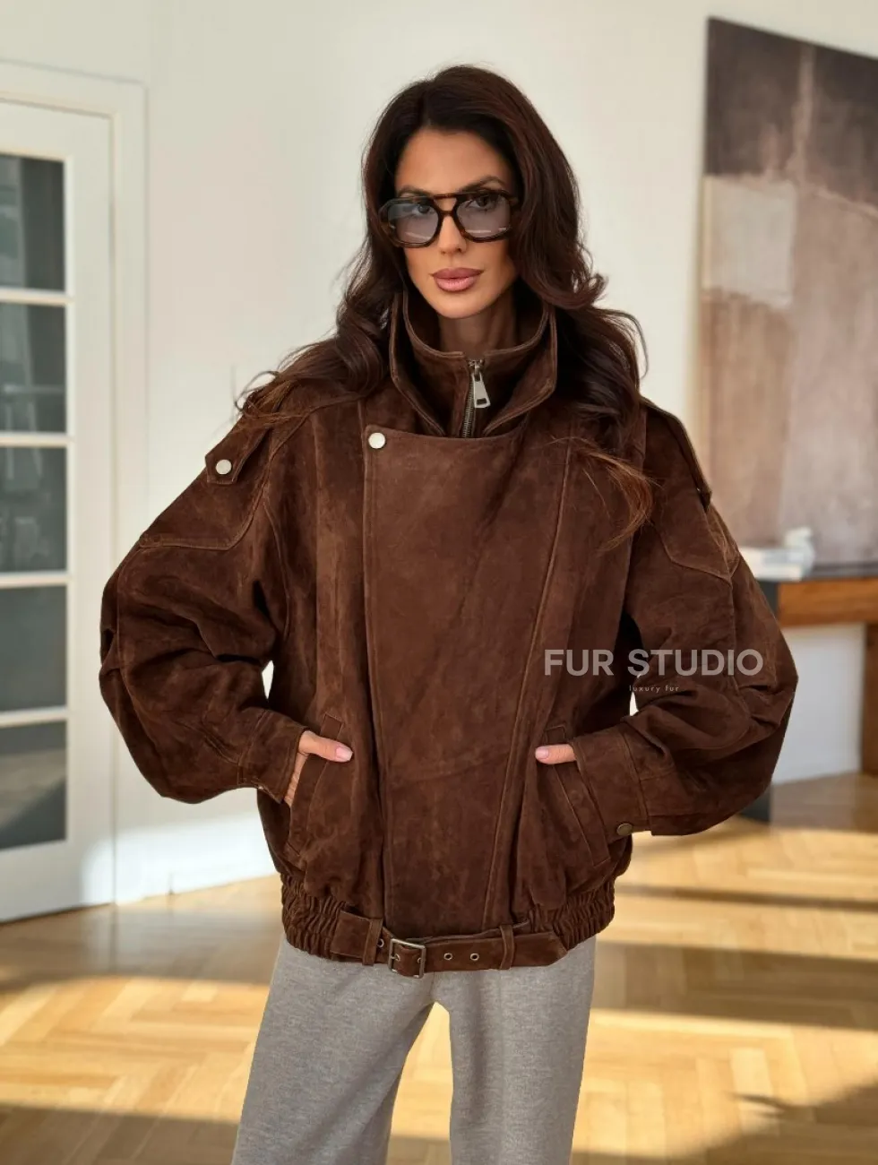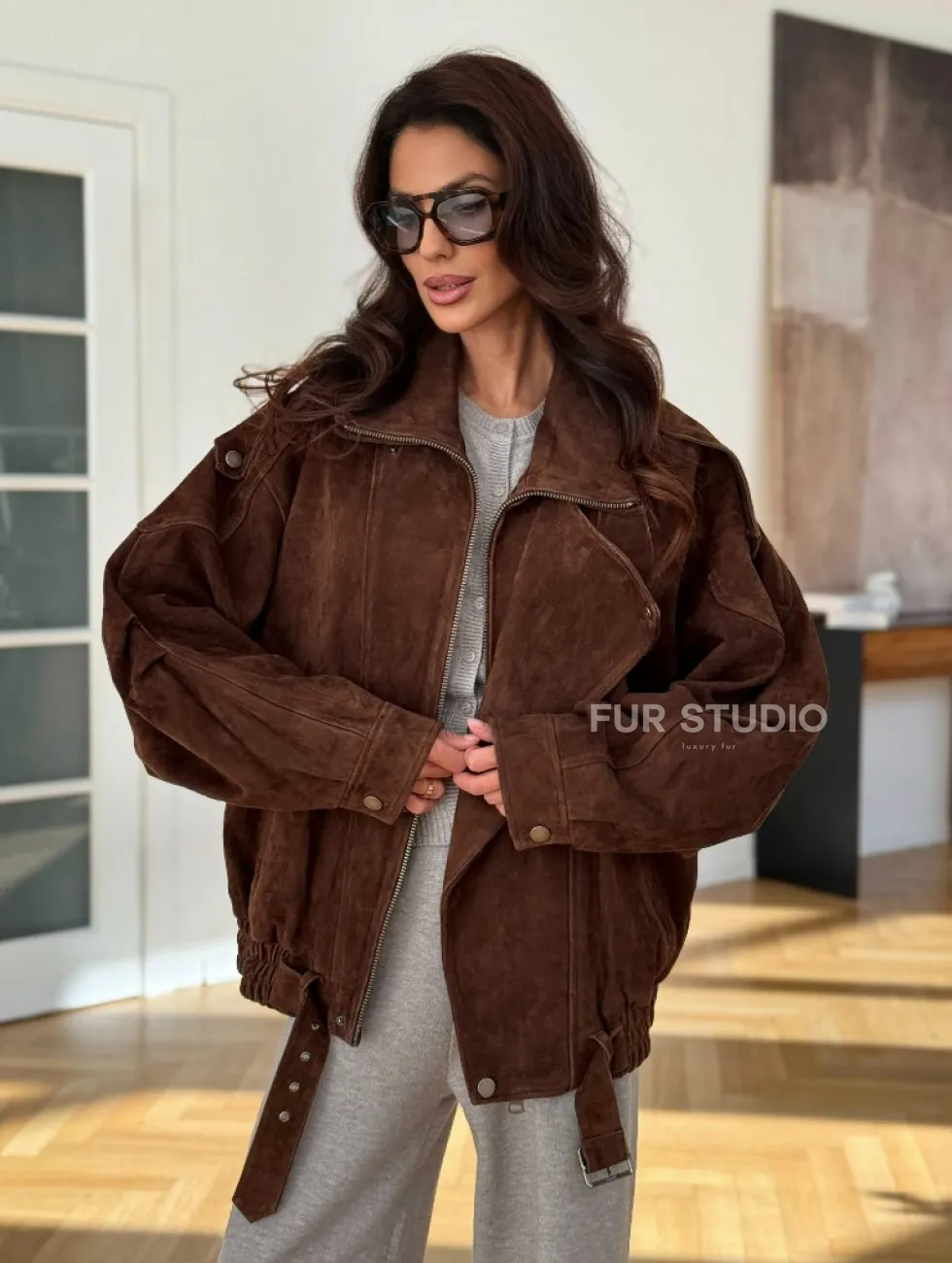 Замшевая куртка женская 2025 доступна для покупки в нашем шоуруме Furs Studio в Москве, где также предоставляется удобная доставка во все города России.