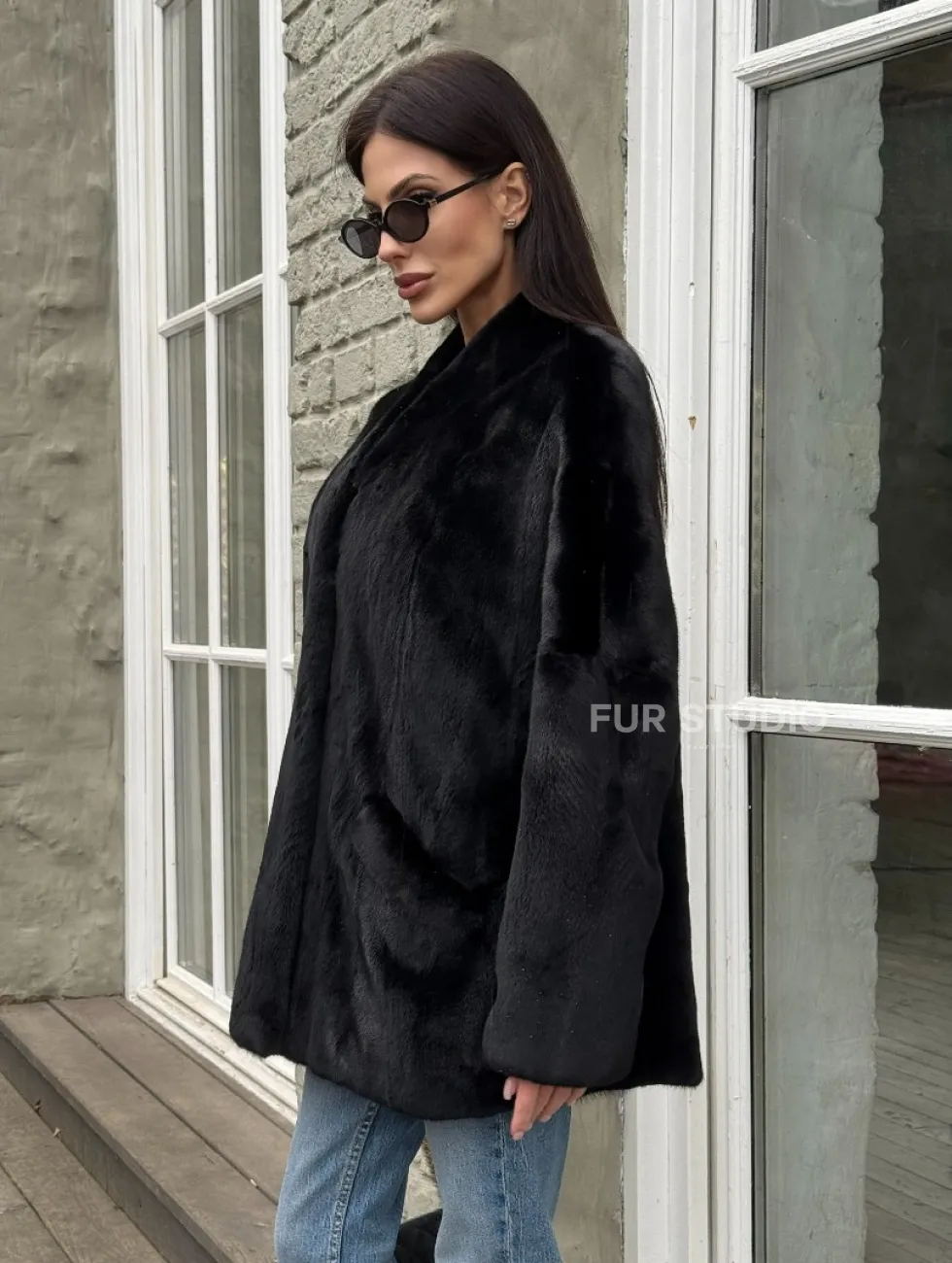 Жакет - шуба из норки BLACKGLAMA с V-образным воротником, косыми карманами доступна для покупки в нашем шоуруме Furs Studio в Москве. У нас так же есть доставка во все города России. Добавьте немного роскоши в свой гардероб с этой шубой, которая будет служить вам многие годы.
