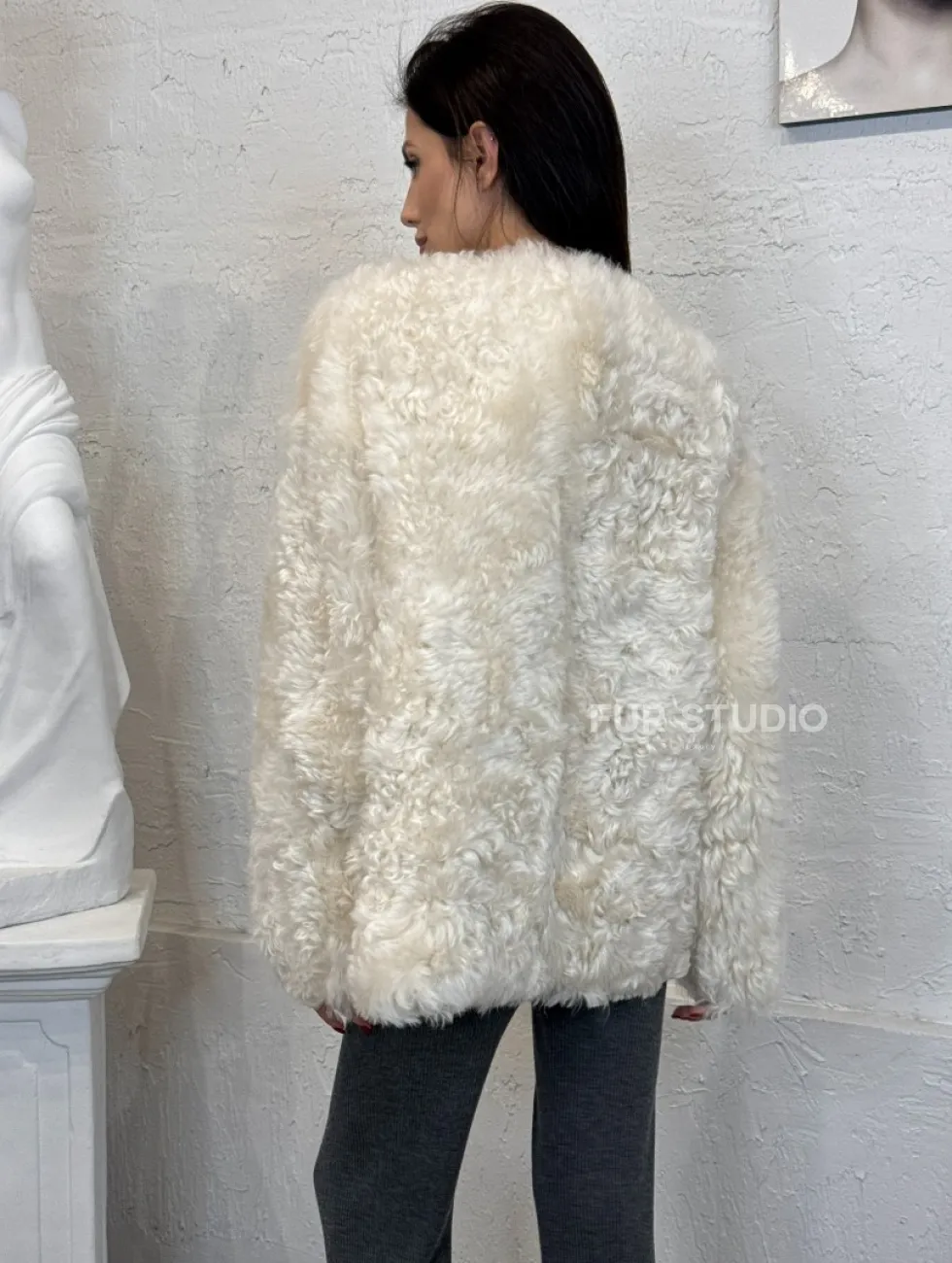 Жакет женский из натуральной овчины с круглым вырезом и накладными карманами доступна для покупки в нашем шоуруме Furs Studio в Москве, а также предлагается удобная доставка во все города России. Обогатите свой гардероб этой дубленкой, которая прослужит вам многие годы, добавив немного роскоши в ваш повседневный образ.