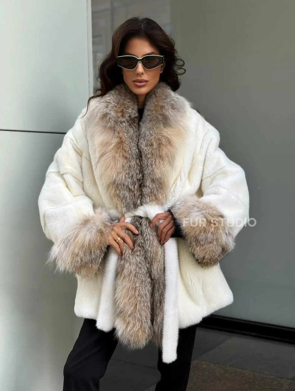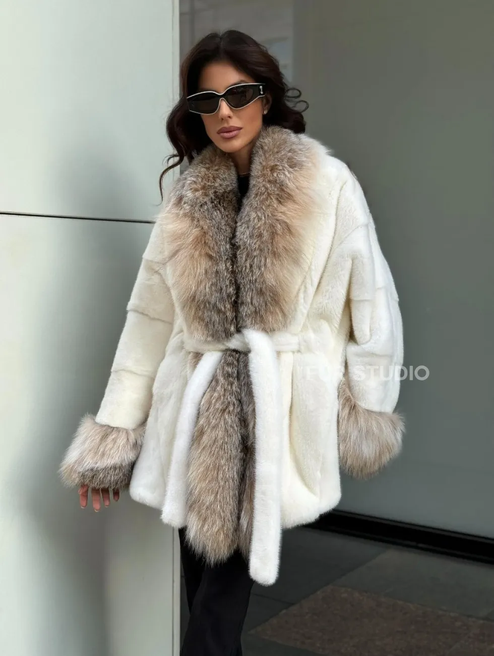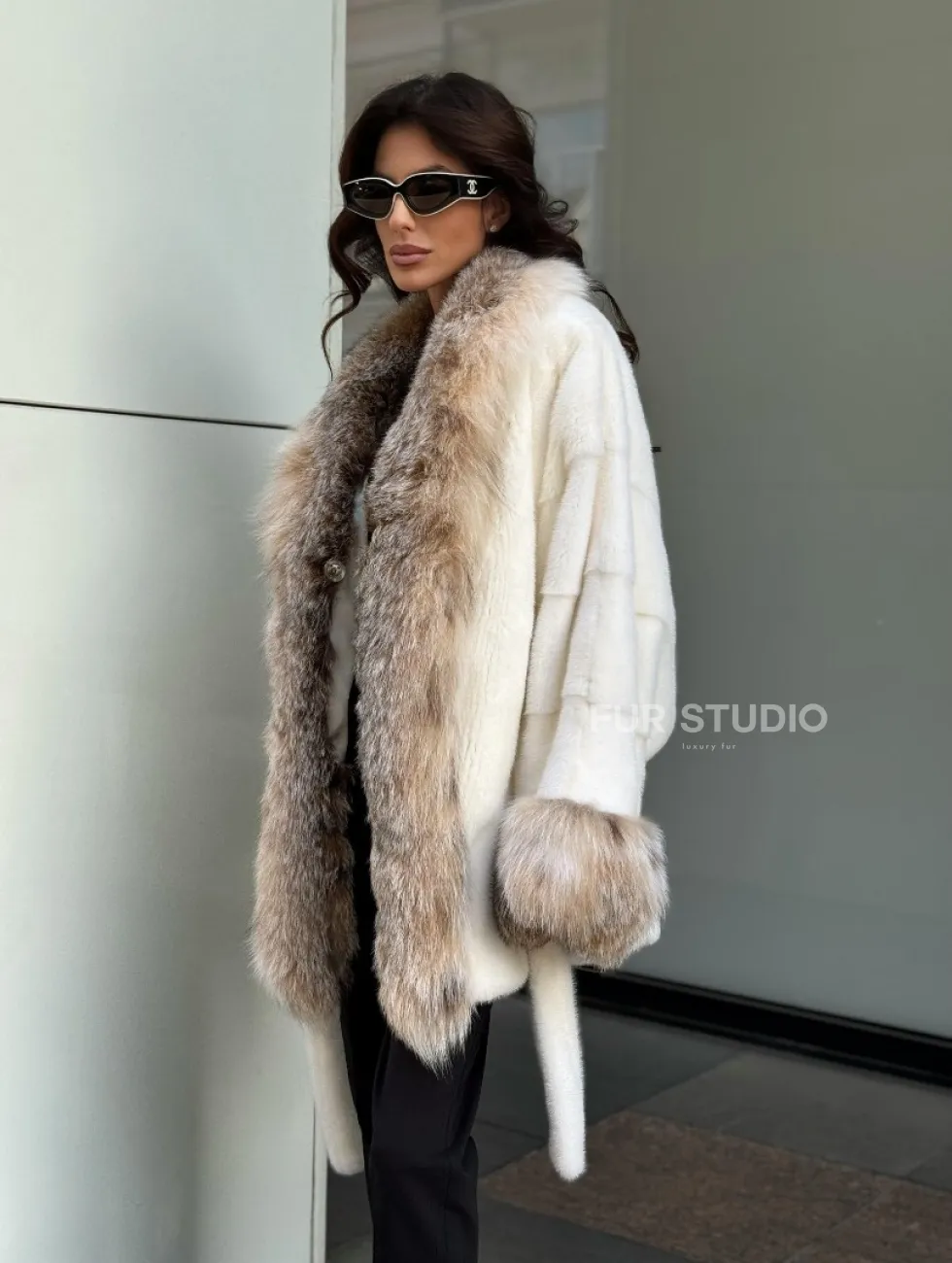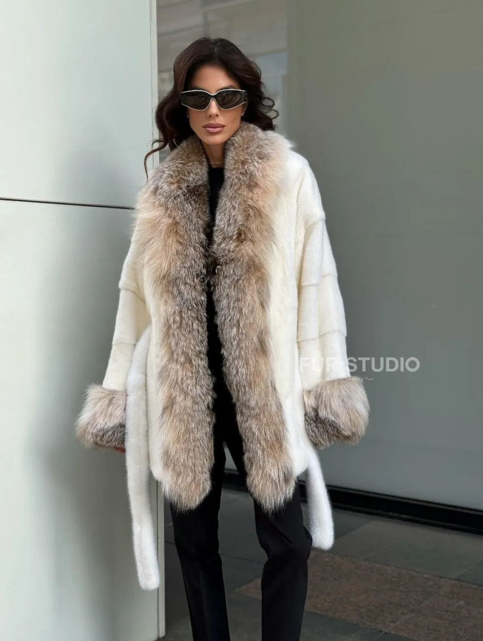 Женская белая норковая шуба с отделкой из меха рыси доступна для покупки в нашем шоуруме Furs Studio в Москве. У нас так же есть доставка во все города России. Добавьте немного роскоши в свой гардероб с этой шубой, которая будет служить вам многие годы.