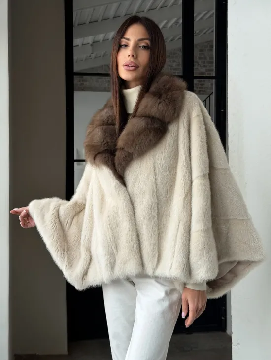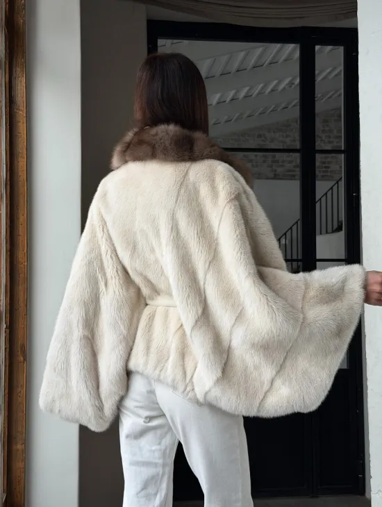 Мех данной шубы аукционная норка , цвет белый. Предлагается в размерах от 40 до 54 (oversize). Длина модели 75-80 см, что выгодно подчеркивает фигуру девушек. Эта модель идеально подойдет для девушек и женщин, предпочитающих роскошные натуральные меха.
