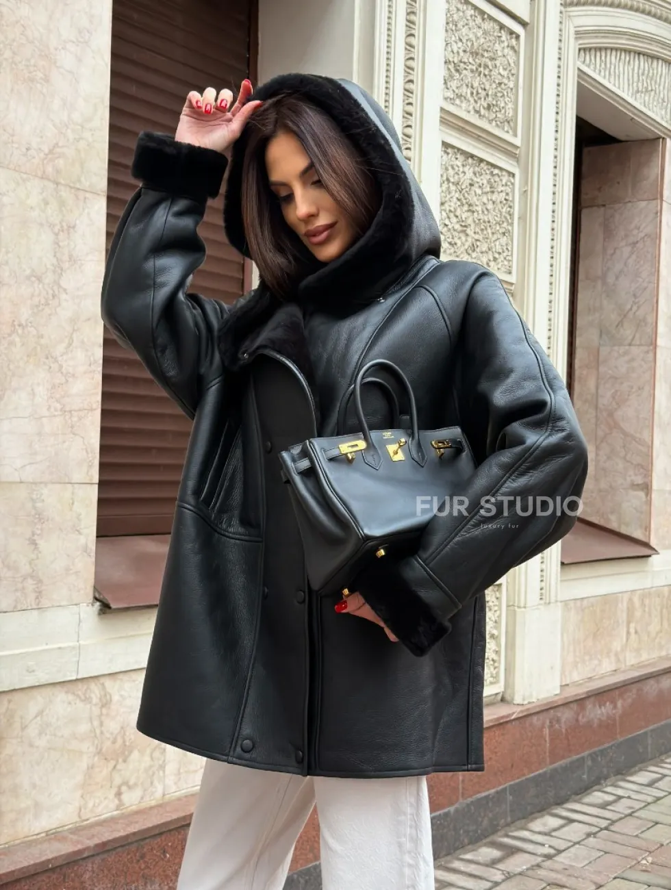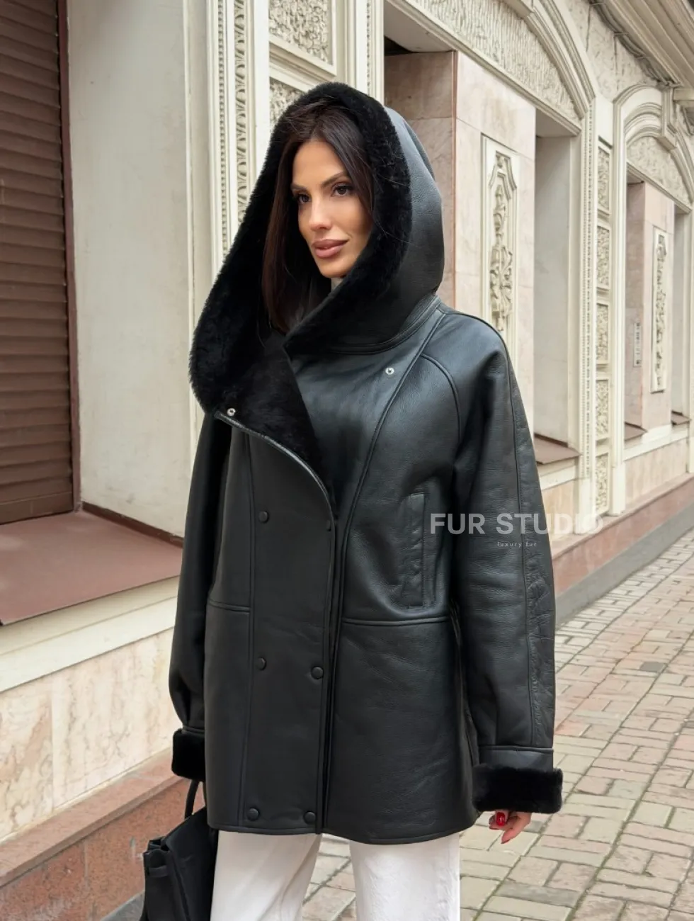 Женская дубленка с капюшоном. Модель предлагается в размерах от 42 до 48. Оптимальная длина моделей 70-75 см подчеркивает линии вашей фигуры. Эта дубленка станет неотъемлемой частью гардероба для тех, кто предпочитает роскошь и утонченность натуральной кожи.