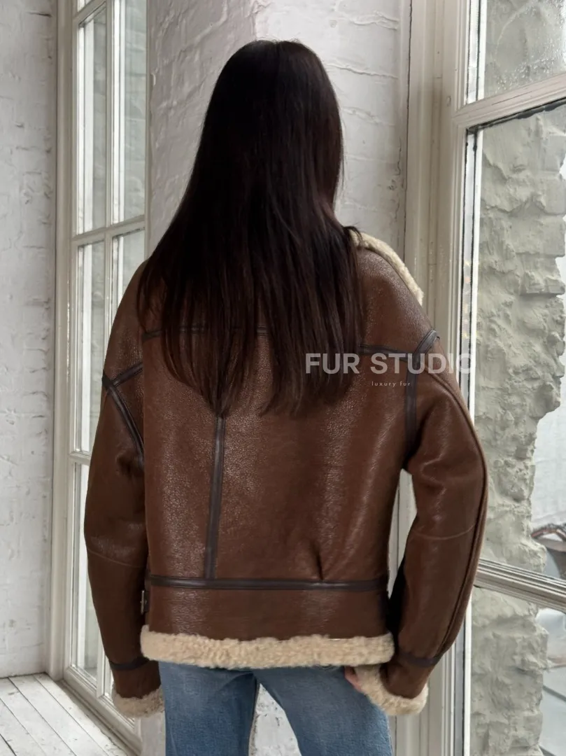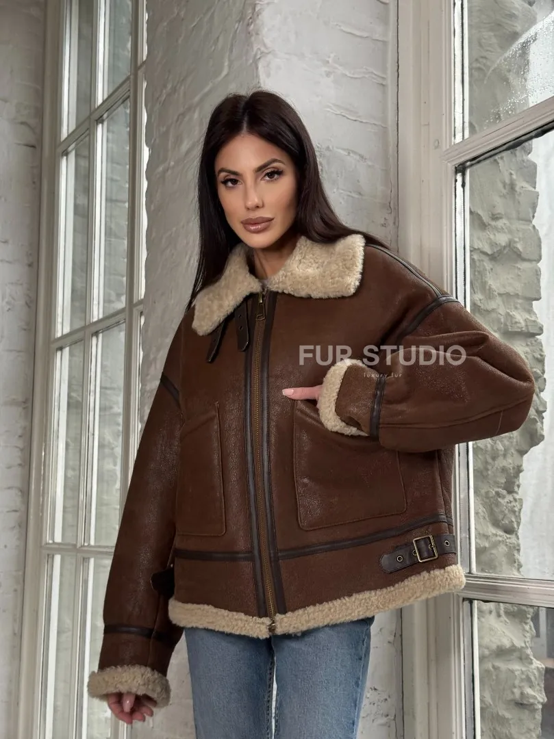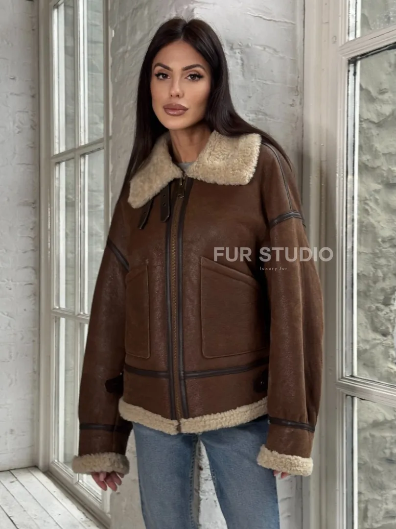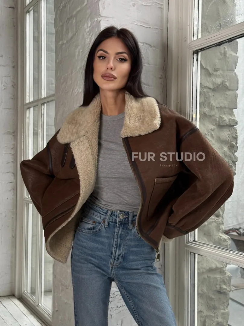 Женская короткая дубленка Brown vintage из натуральной овчины кёрли. Модель предлагается в размерах от 42 до 46 с 48. Оптимальная длина моделей 55-60 см подчеркивает линии вашей фигуры. Эта дубленка станет неотъемлемой частью гардероба для тех, кто предпочитает роскошь и утонченность натуральной кожи.