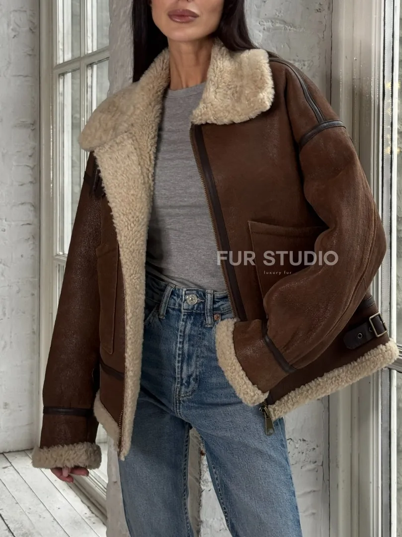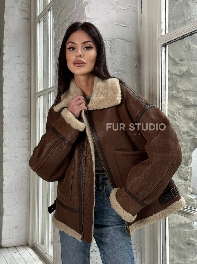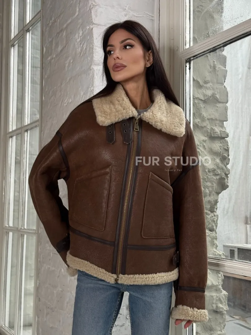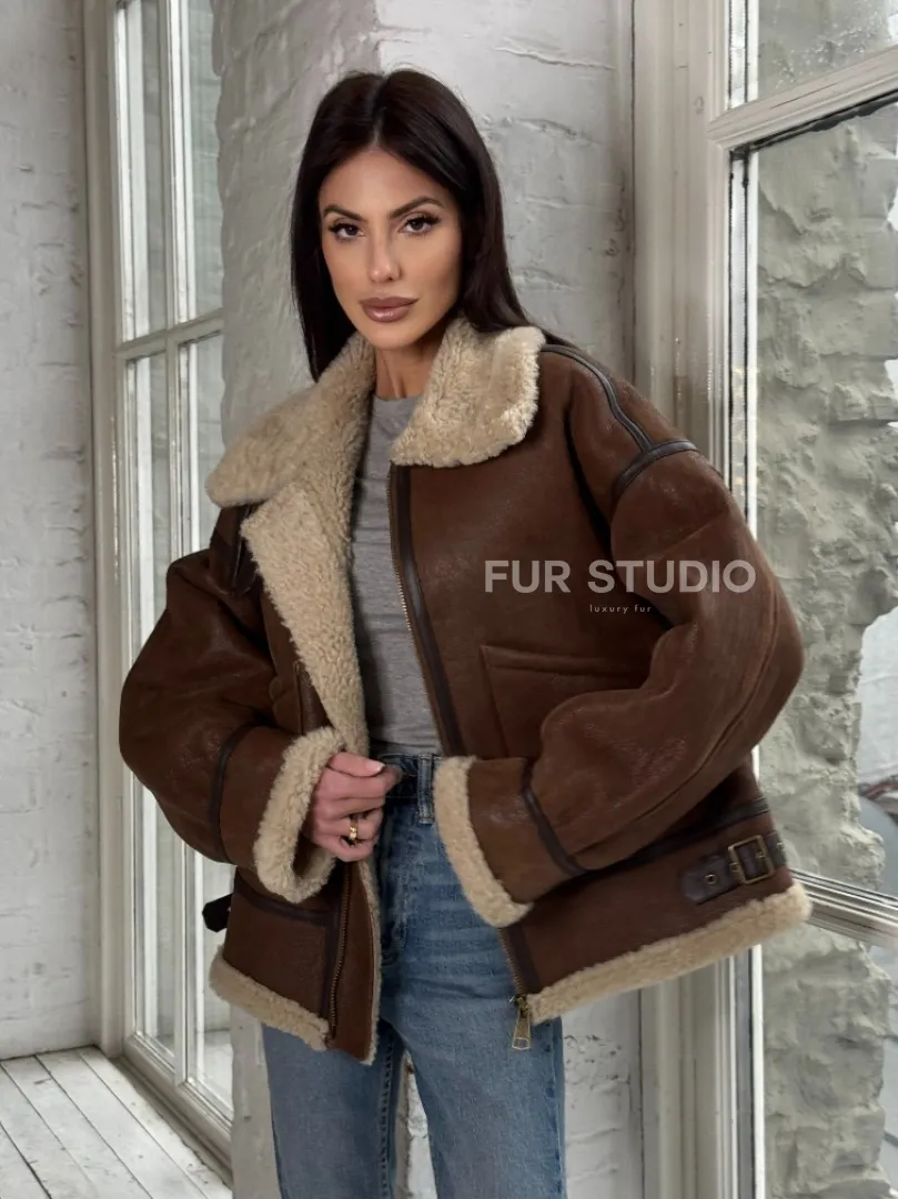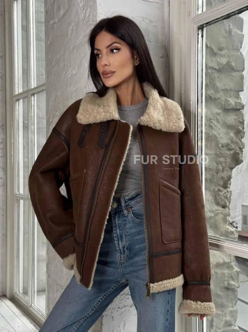 Женская короткая дубленка Brown vintage из натуральной овчины кёрли. Модель предлагается в размерах от 42 до 46 с 48. Оптимальная длина моделей 55-60 см подчеркивает линии вашей фигуры. Эта дубленка станет неотъемлемой частью гардероба для тех, кто предпочитает роскошь и утонченность натуральной кожи.
