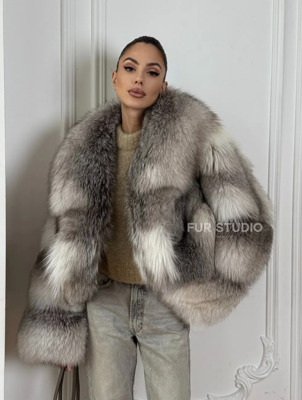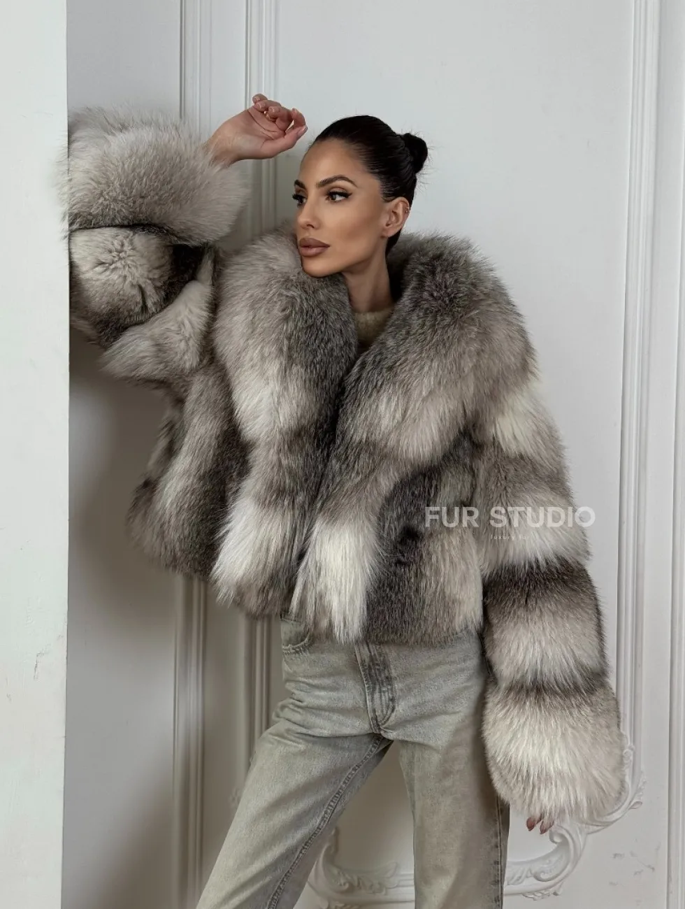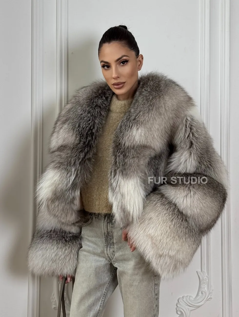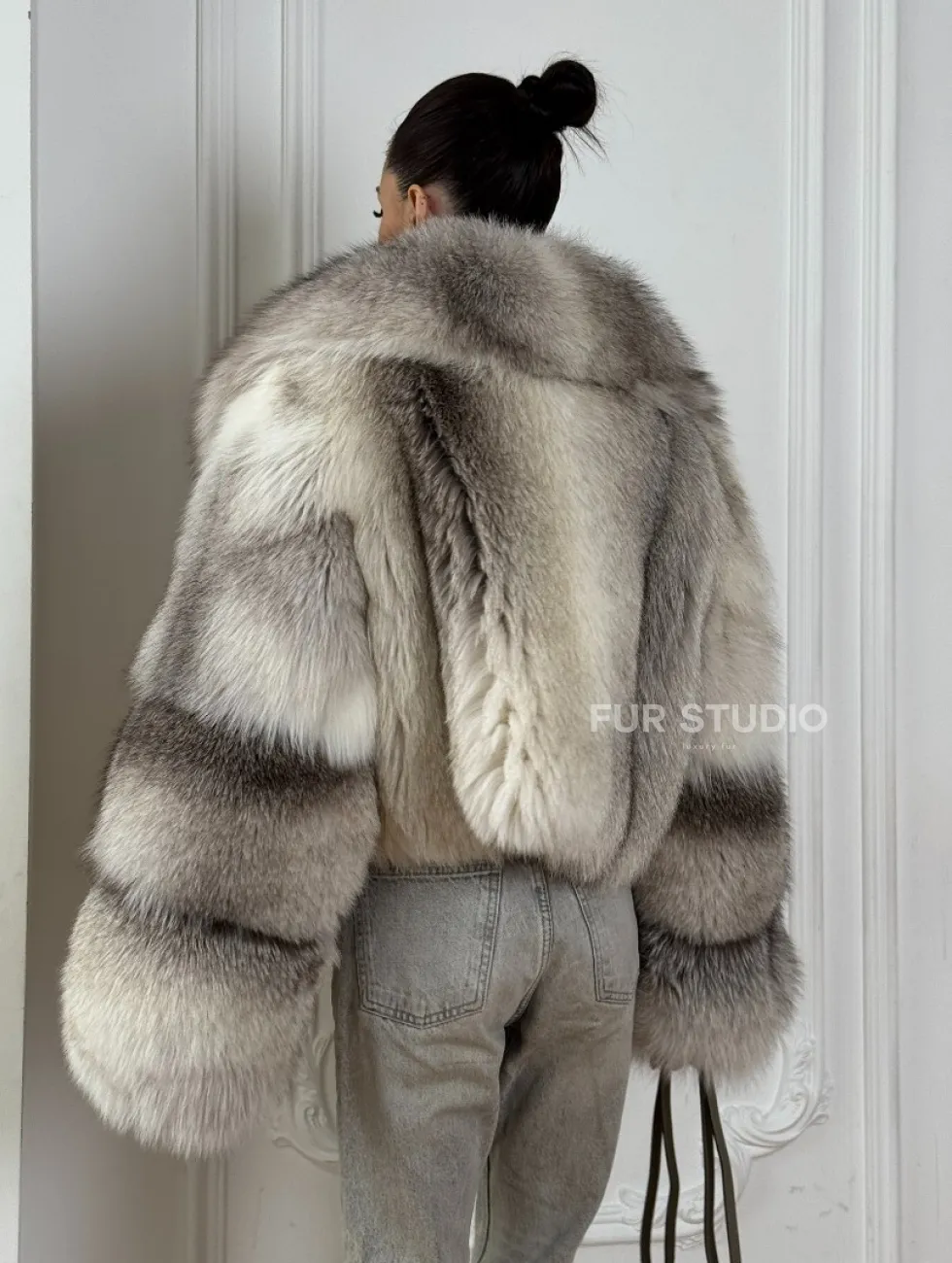 Шуба из меха арктической лисы - отличный выбор женщин, которые любят выглядеть стильно в зимнее время года. Мех смотрится шикарно и богато. Необычная расцветка подчеркнет цвет волос и глаз владелицы. В шубе будет комфортно в холодную зиму. Широкие манжеты делают акцент на тонкости кистей.