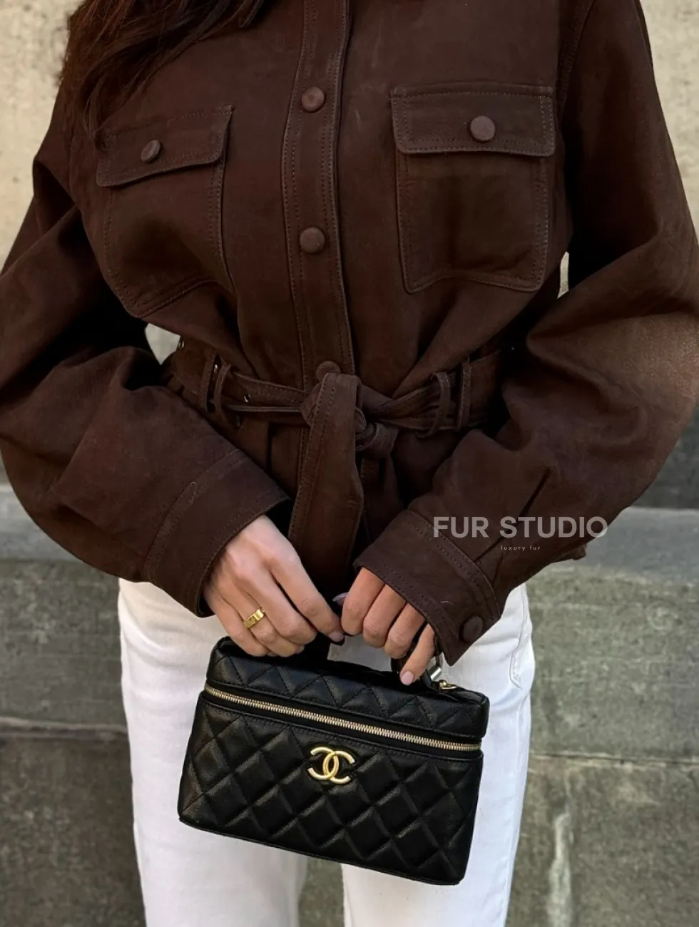 Женская куртка - рубашка из замши доступна для покупки в нашем шоуруме Furs Studio в Москве, где также предоставляется удобная доставка во все города России.