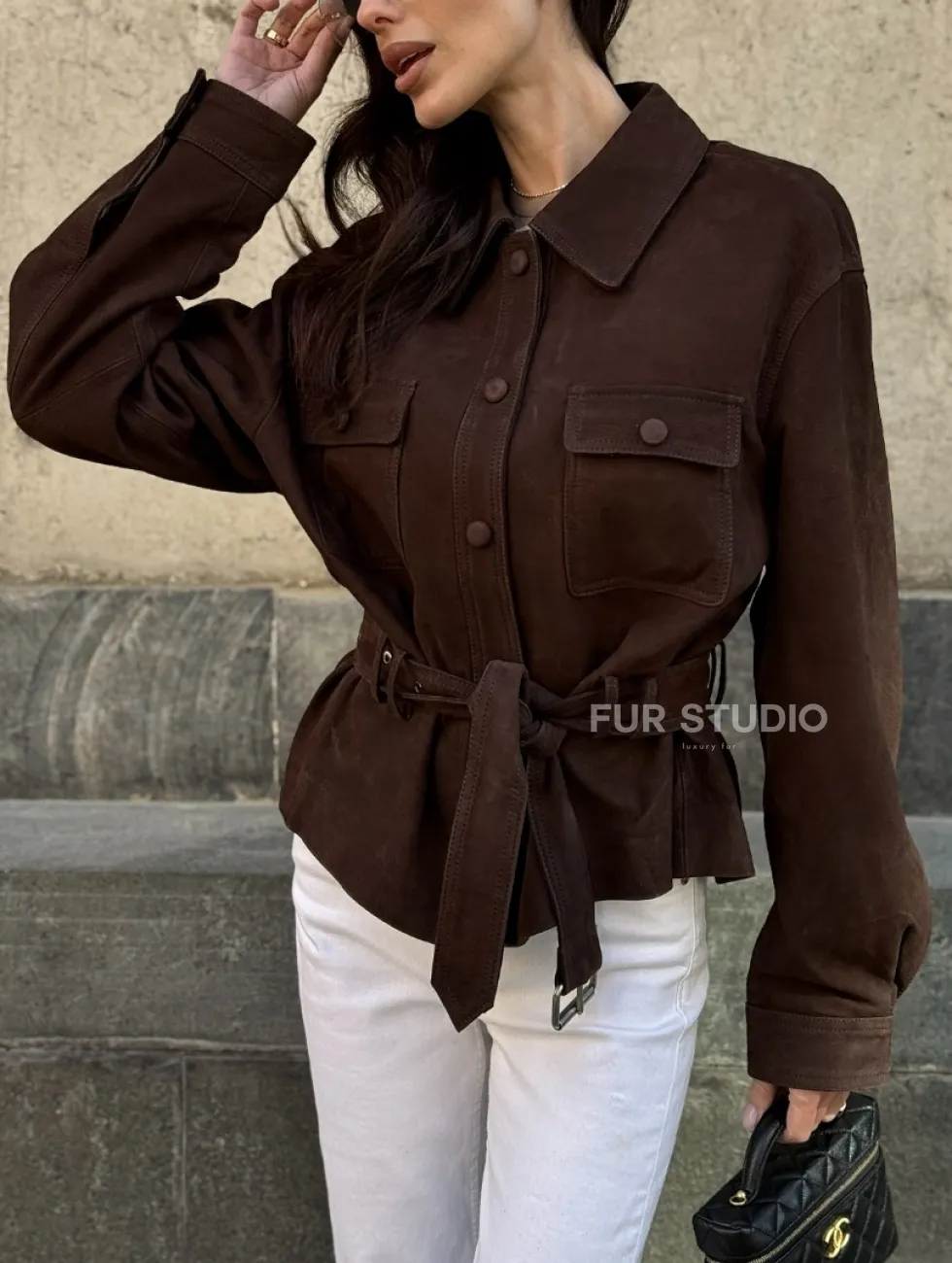 Восхититесь элегантностью и несравненным комфортом с нашей эксклюзивной коллекцией кожаных изделий. Изготовленная из первоклассной натуральной кожи, Женская куртка - рубашка из замши не только согреет вас в прохладные дни, но и подчеркнет ваш изысканный вкус. Уникальный дизайн и высокое качество делают наши представленные образцы идеальным выбором для утончённых образов.
