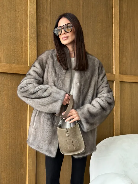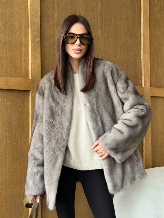 Мех данной шубы аукционная норка , цвет серый. Предлагается в размерах от 42 до 56. Длина модели 75-80 см, что выгодно подчеркивает фигуру девушек. Эта модель идеально подойдет для девушек и женщин, предпочитающих роскошные натуральные меха.