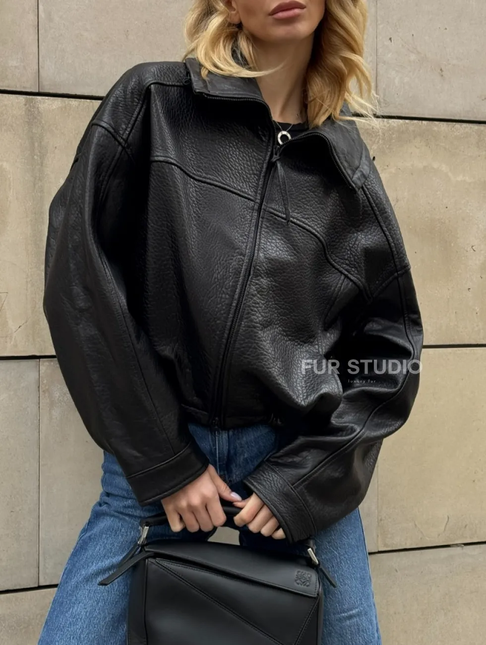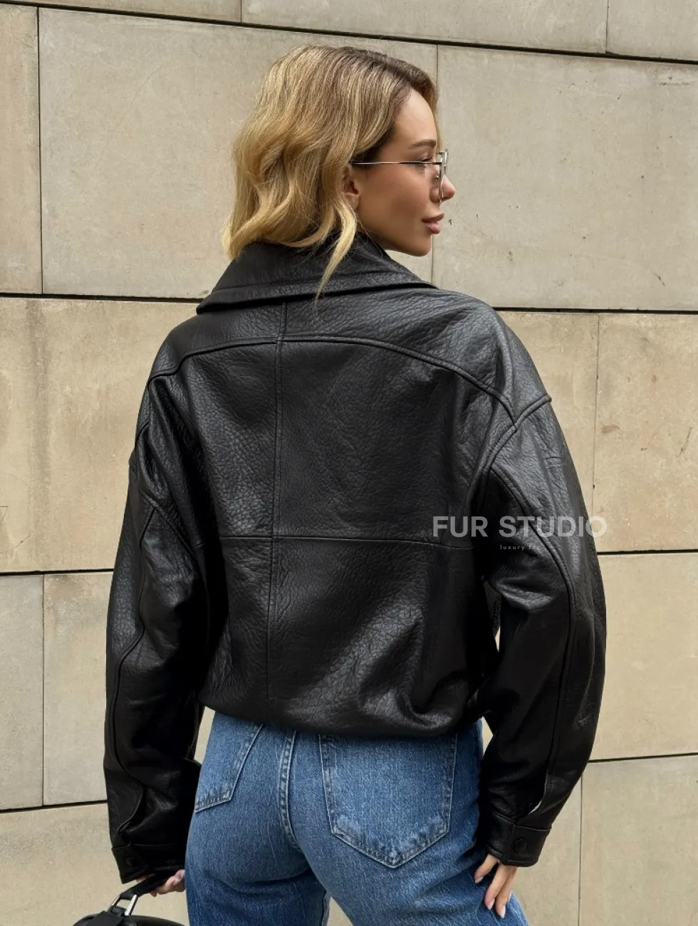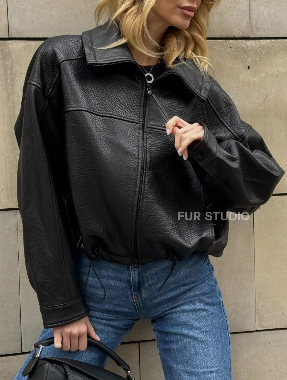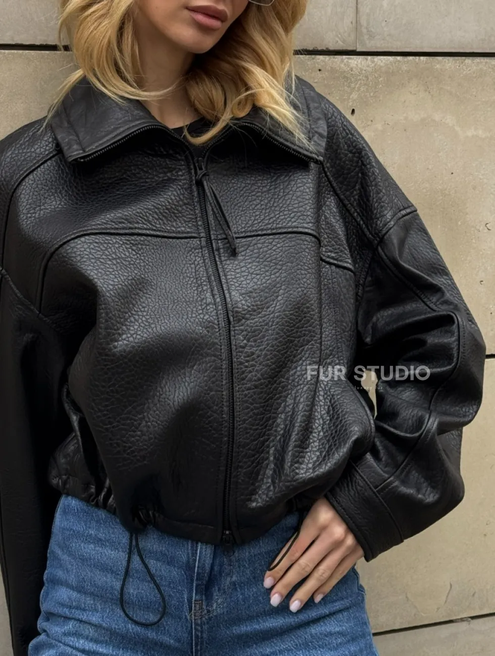Женская укороченная кожаная куртка с поясом на кулиске и воротником-стойкой доступна для покупки в нашем шоуруме Furs Studio в Москве, где также предоставляется удобная доставка во все города России.