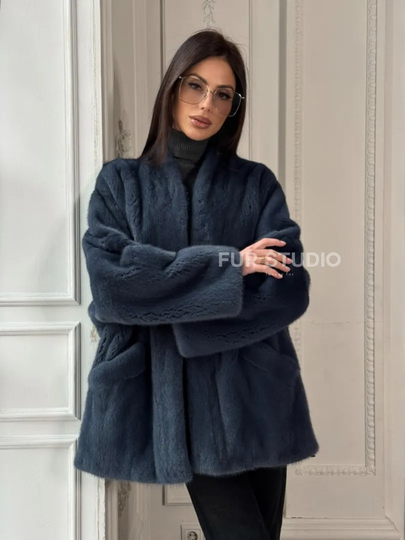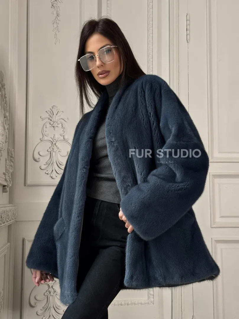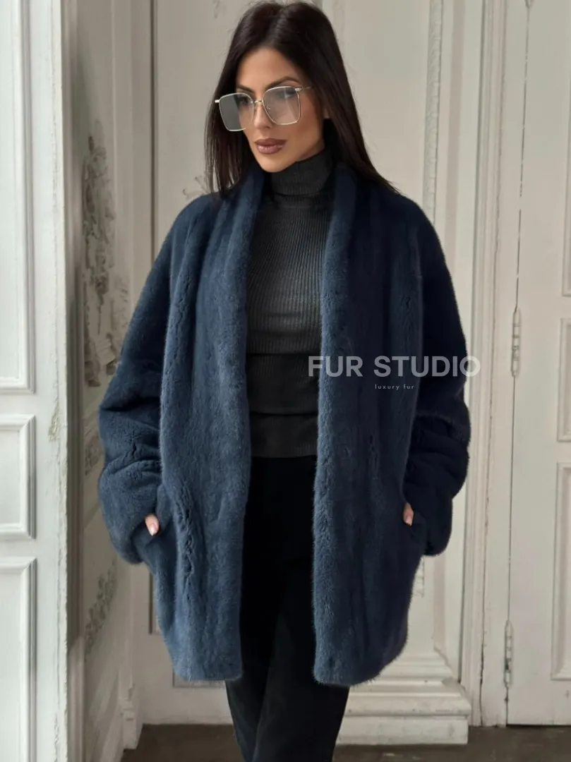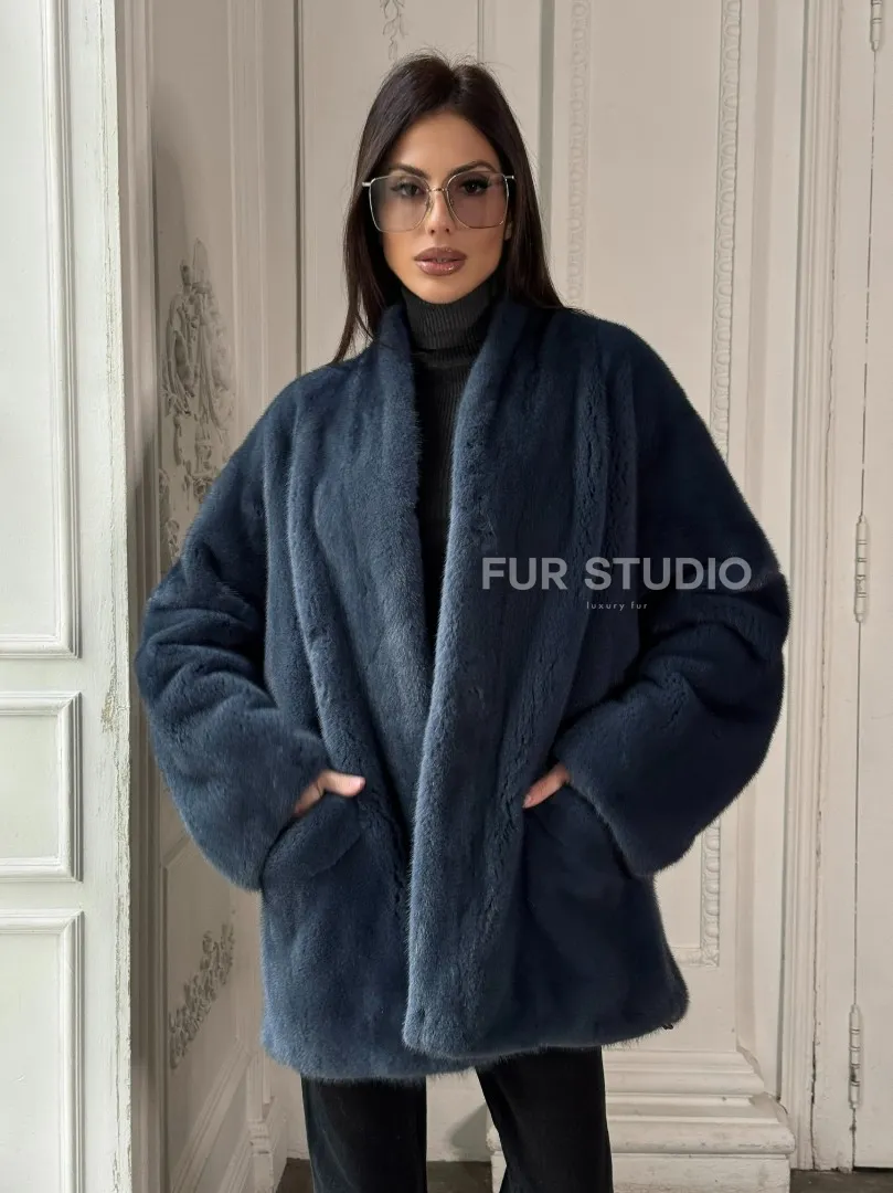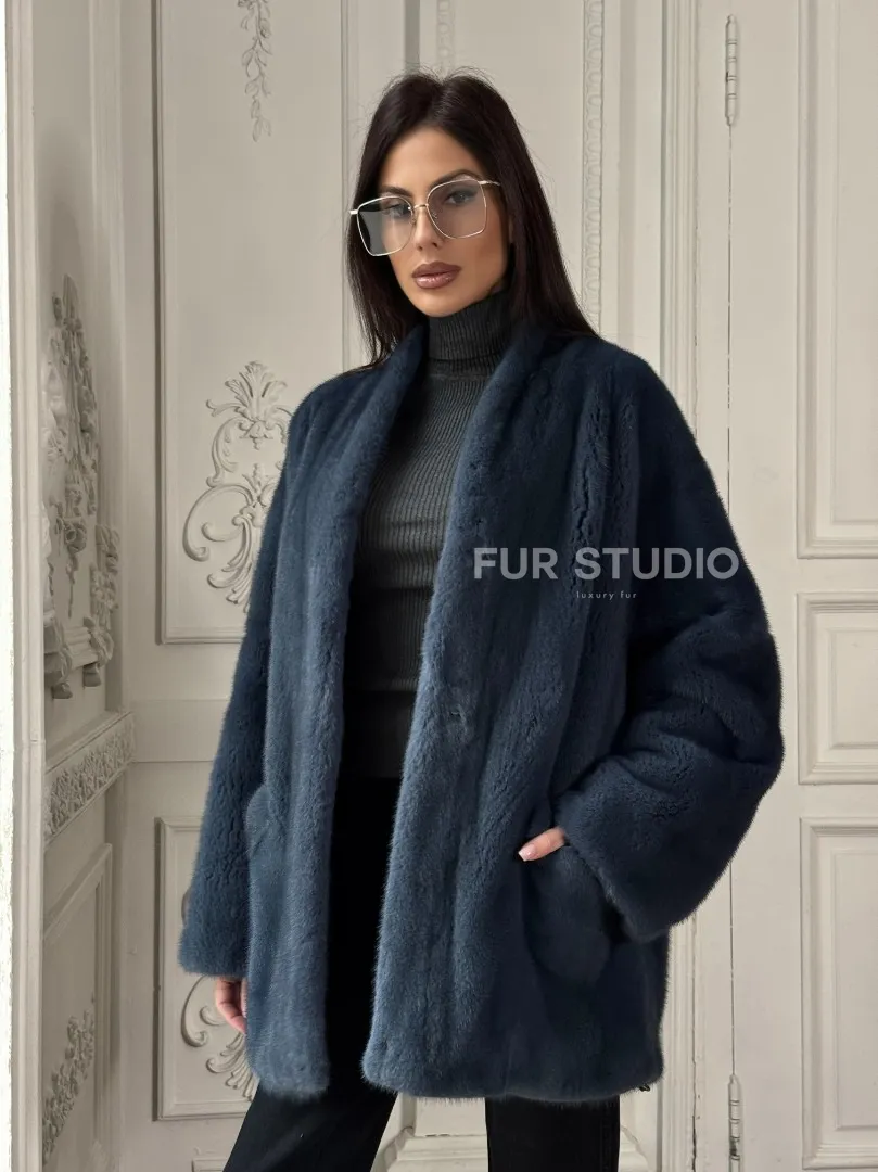 Мех данной шубы аукционная норка, цвет синий. Предлагается в размерах от 42 до 52. Длина модели 70-75 см, что выгодно подчеркивает фигуру девушек. Эта модель идеально подойдет для девушек и женщин, предпочитающих роскошные натуральные меха.