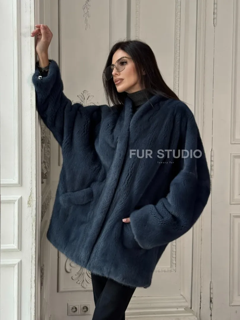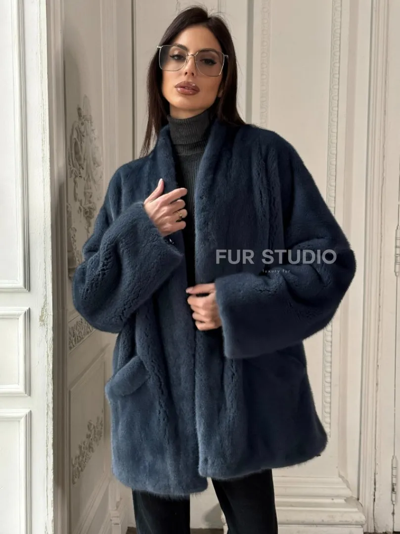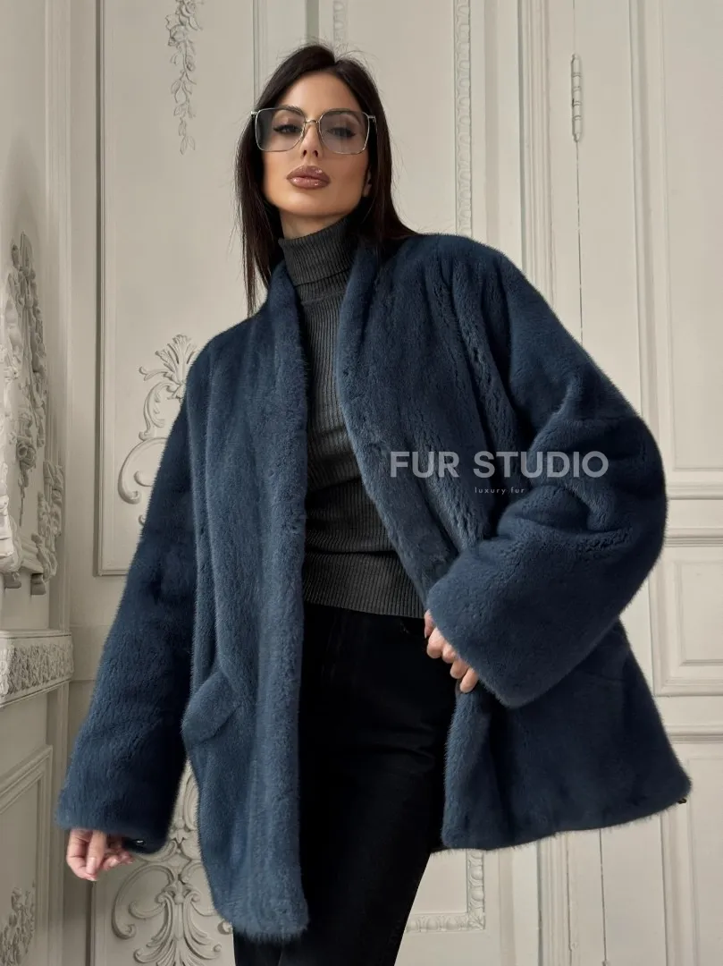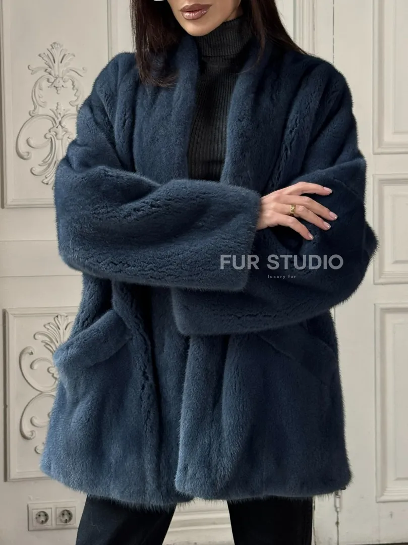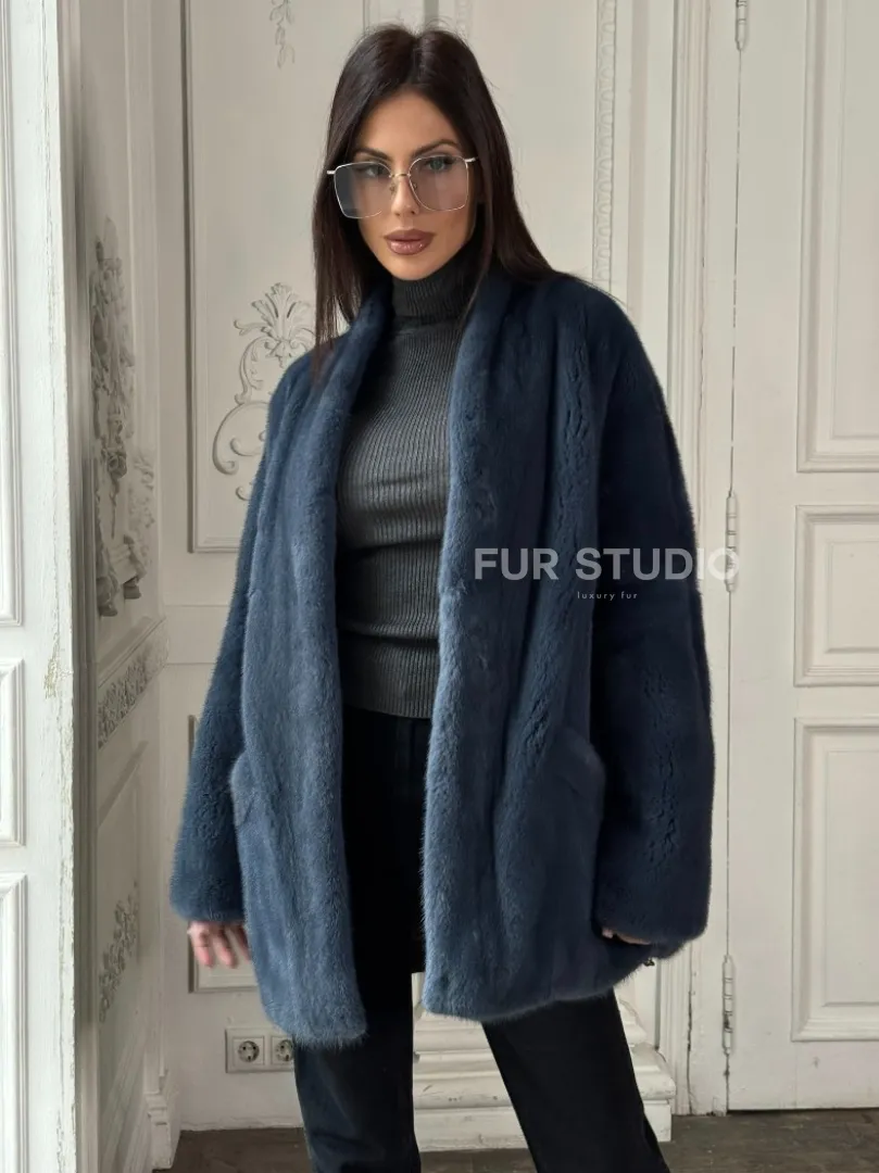 Мех данной шубы аукционная норка, цвет синий. Предлагается в размерах от 42 до 52. Длина модели 70-75 см, что выгодно подчеркивает фигуру девушек. Эта модель идеально подойдет для девушек и женщин, предпочитающих роскошные натуральные меха.