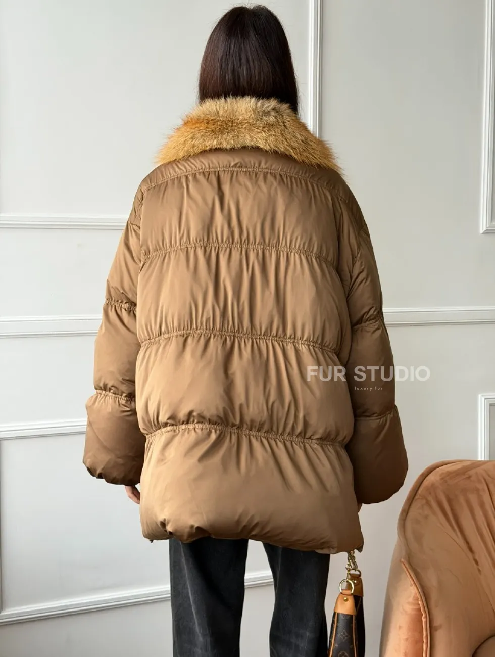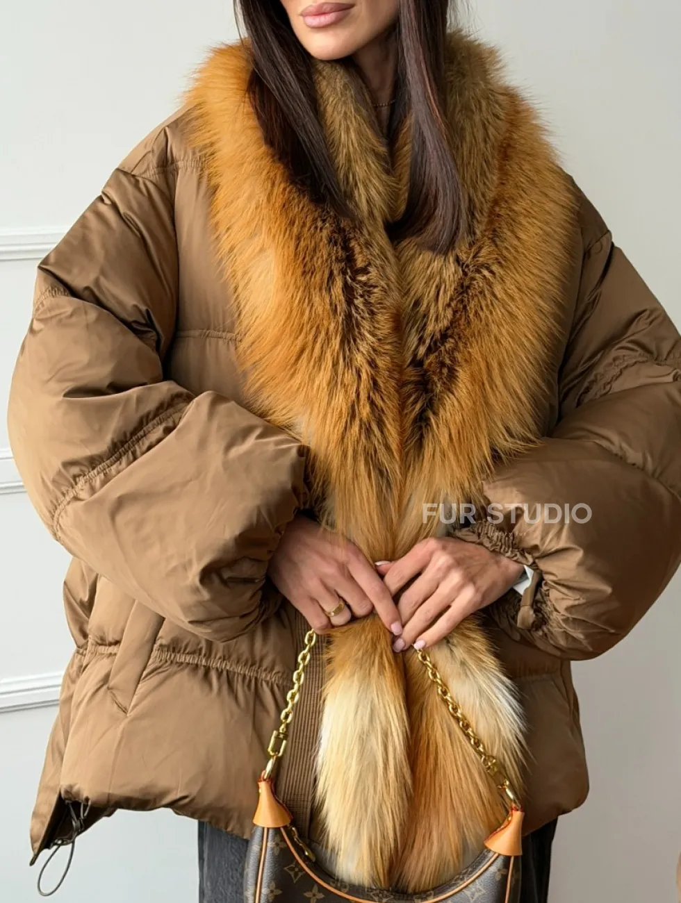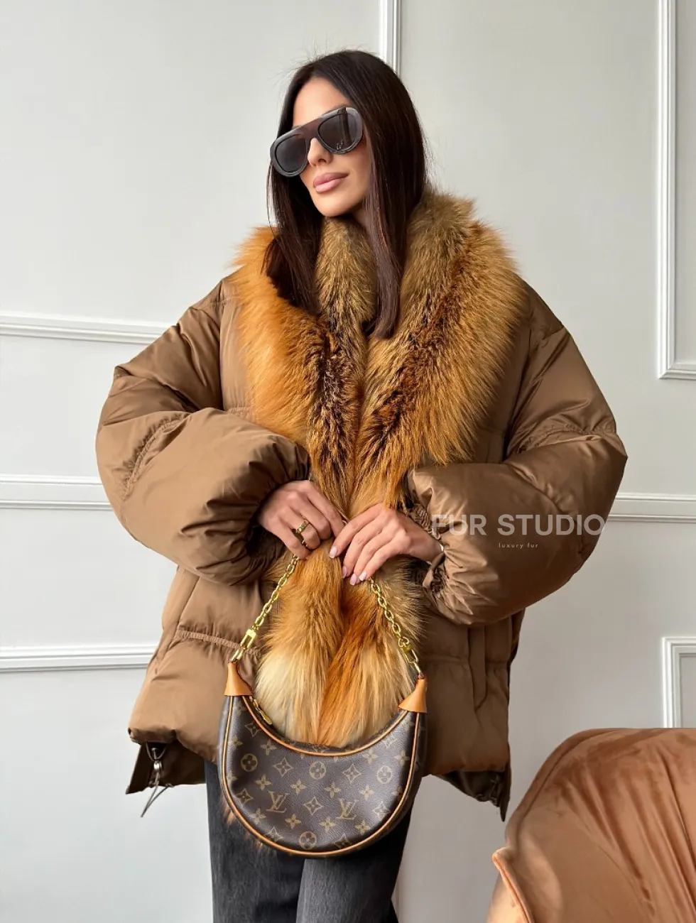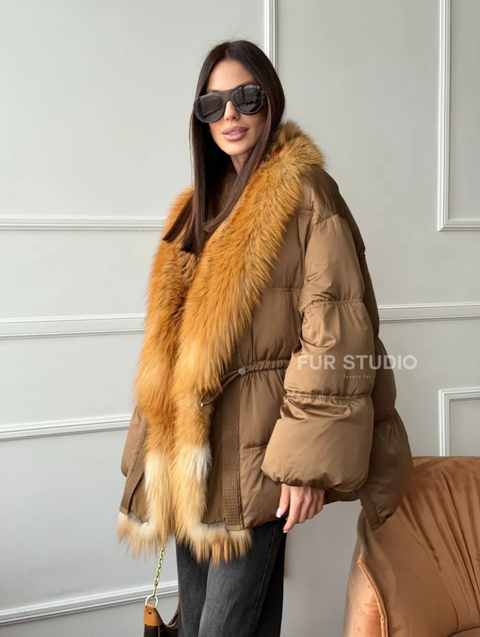 Женский пуховик оверсайз с мехом лисы 102747