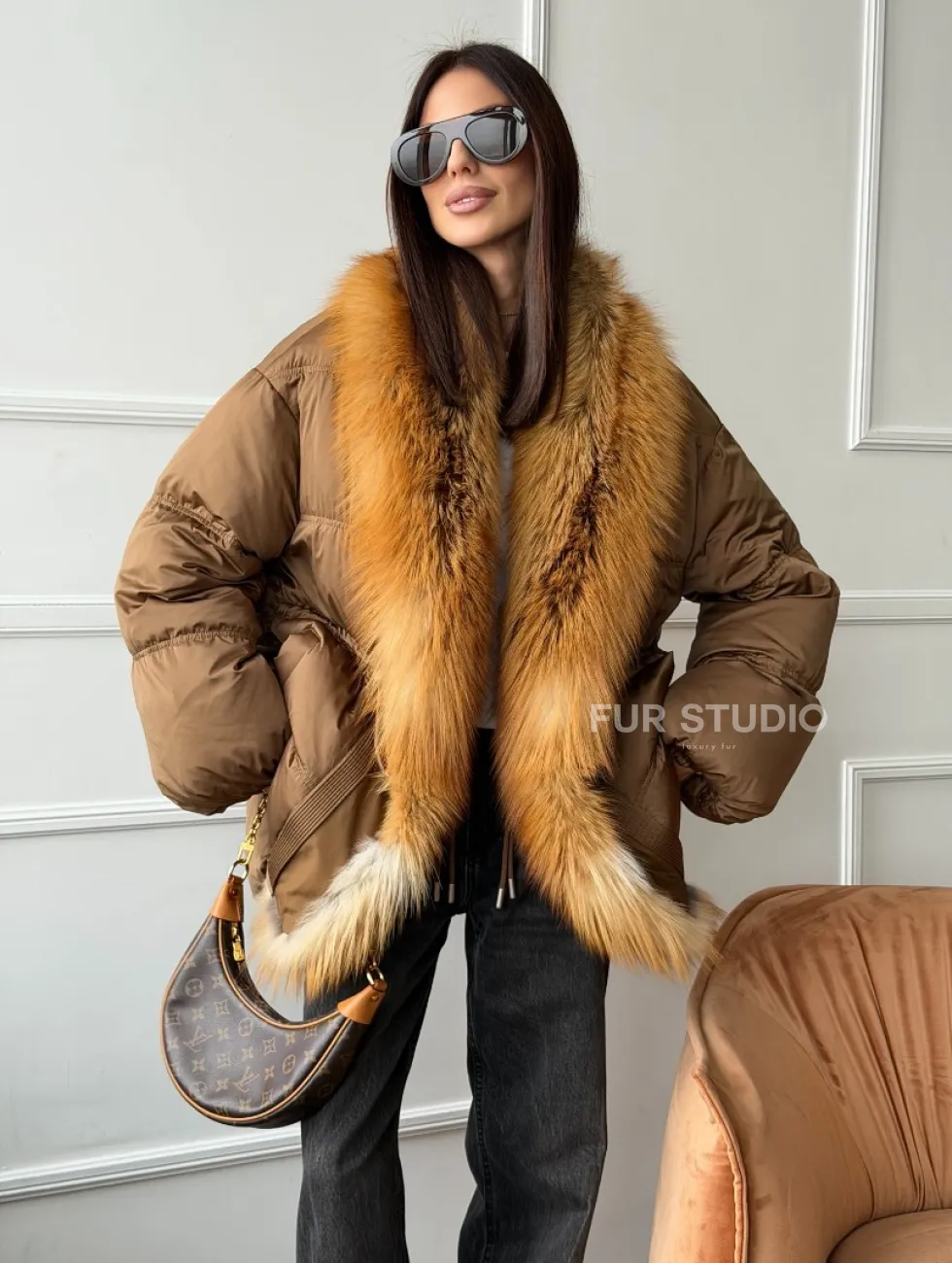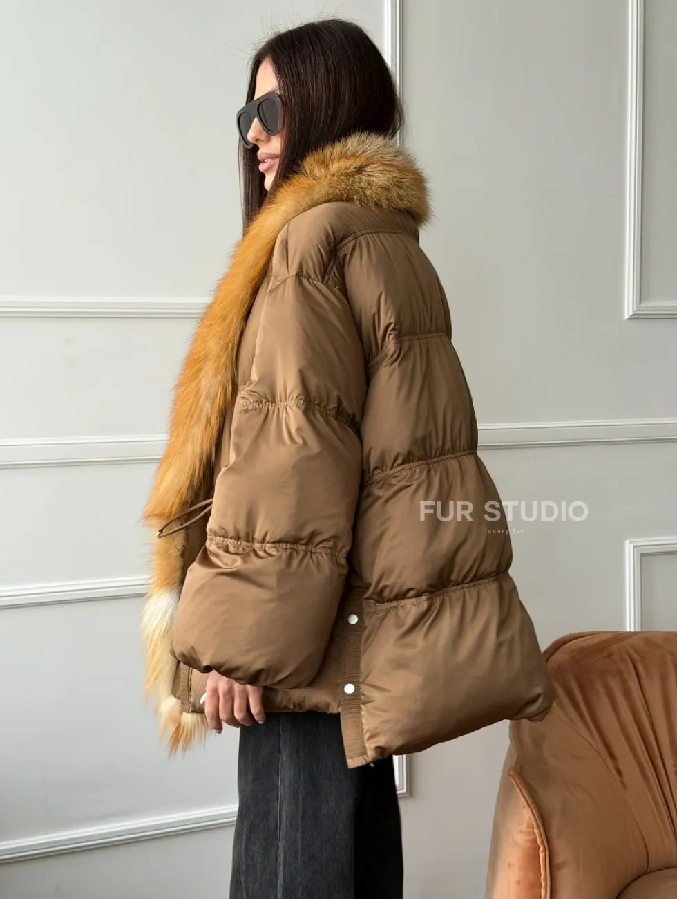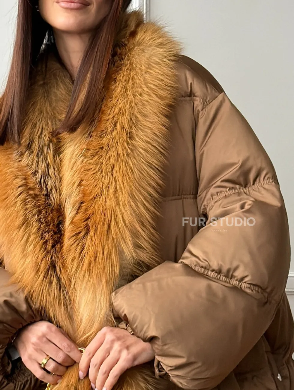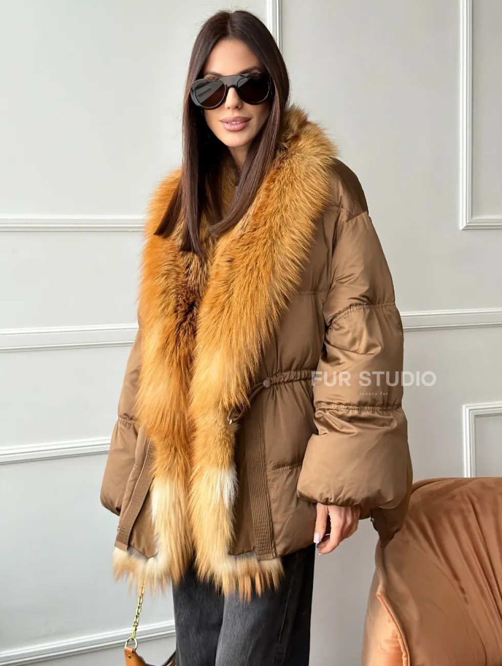Женский пуховик оверсайз с мехом лисы 102747