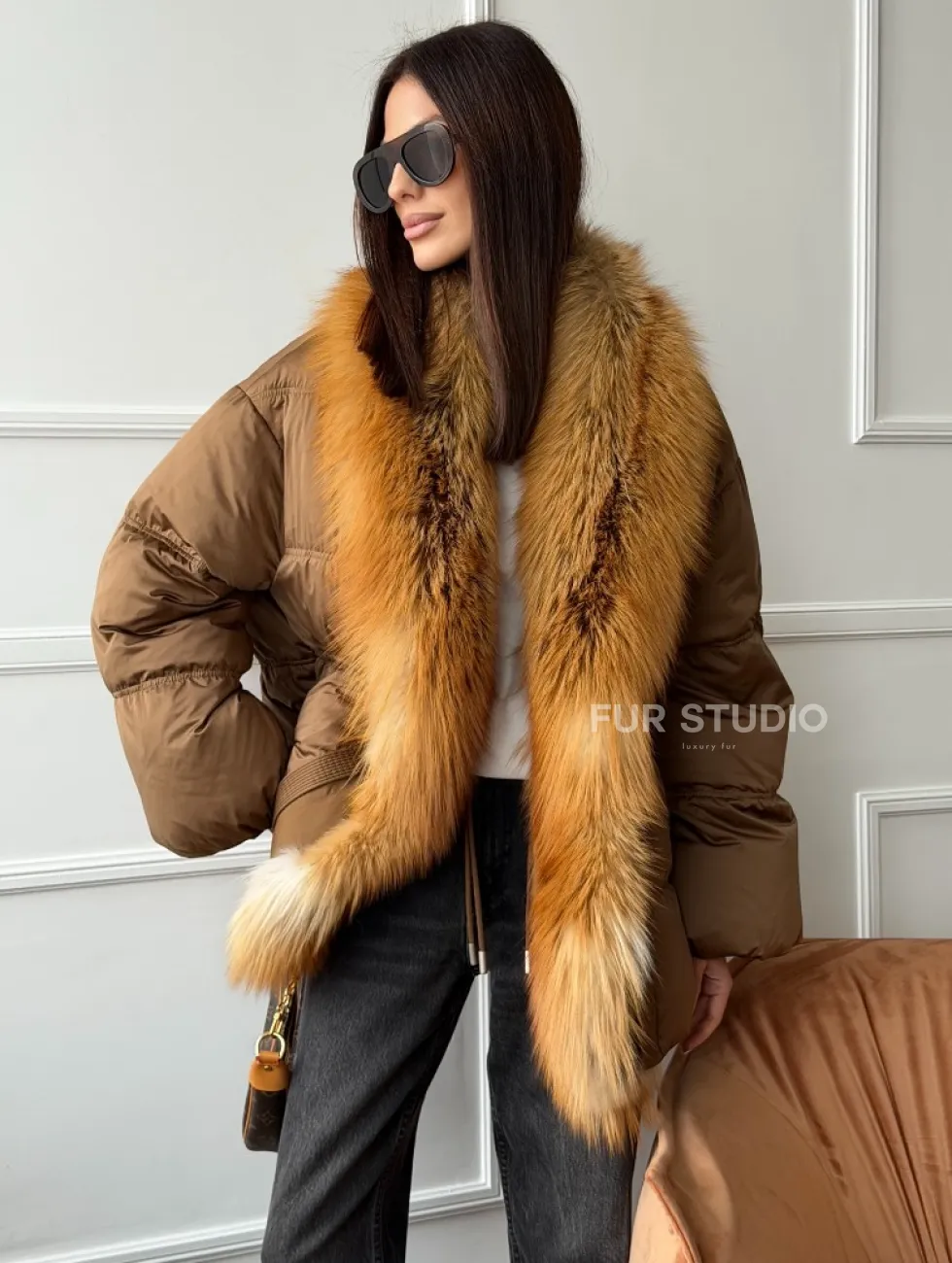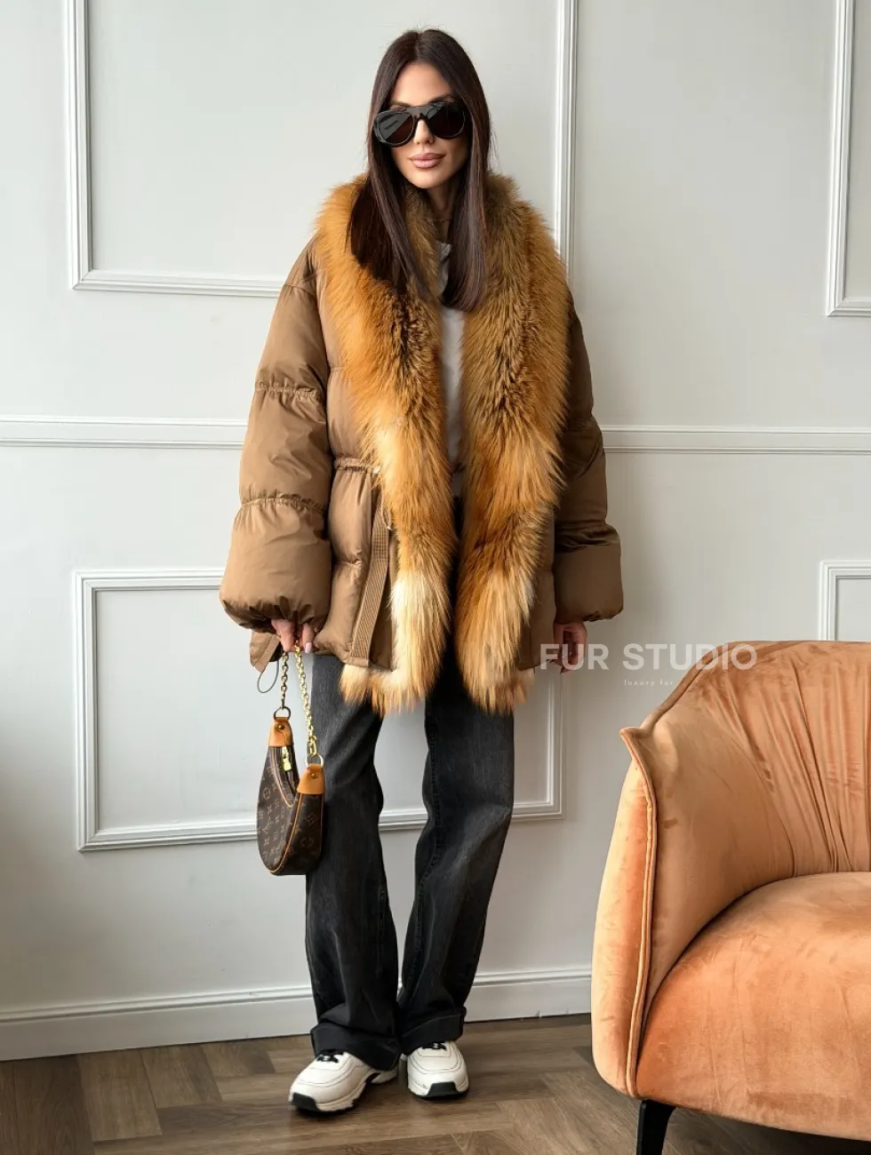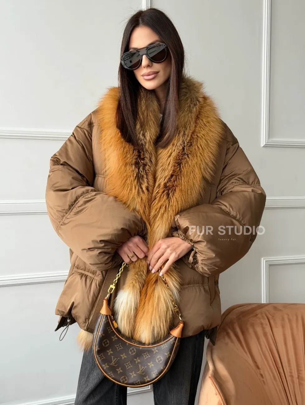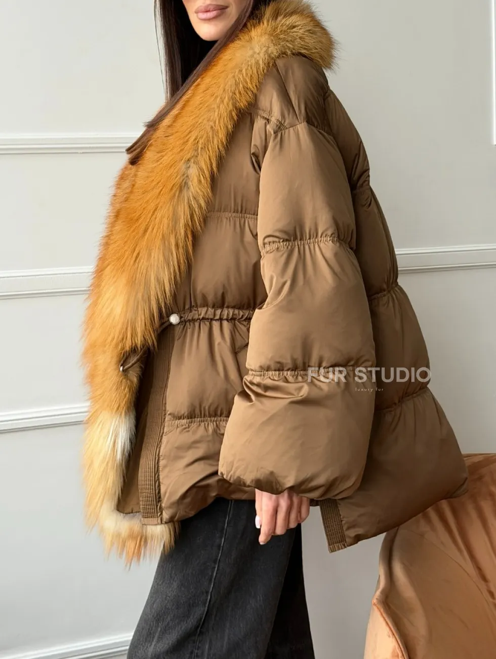 Женский пуховик оверсайз с мехом лисы 102747