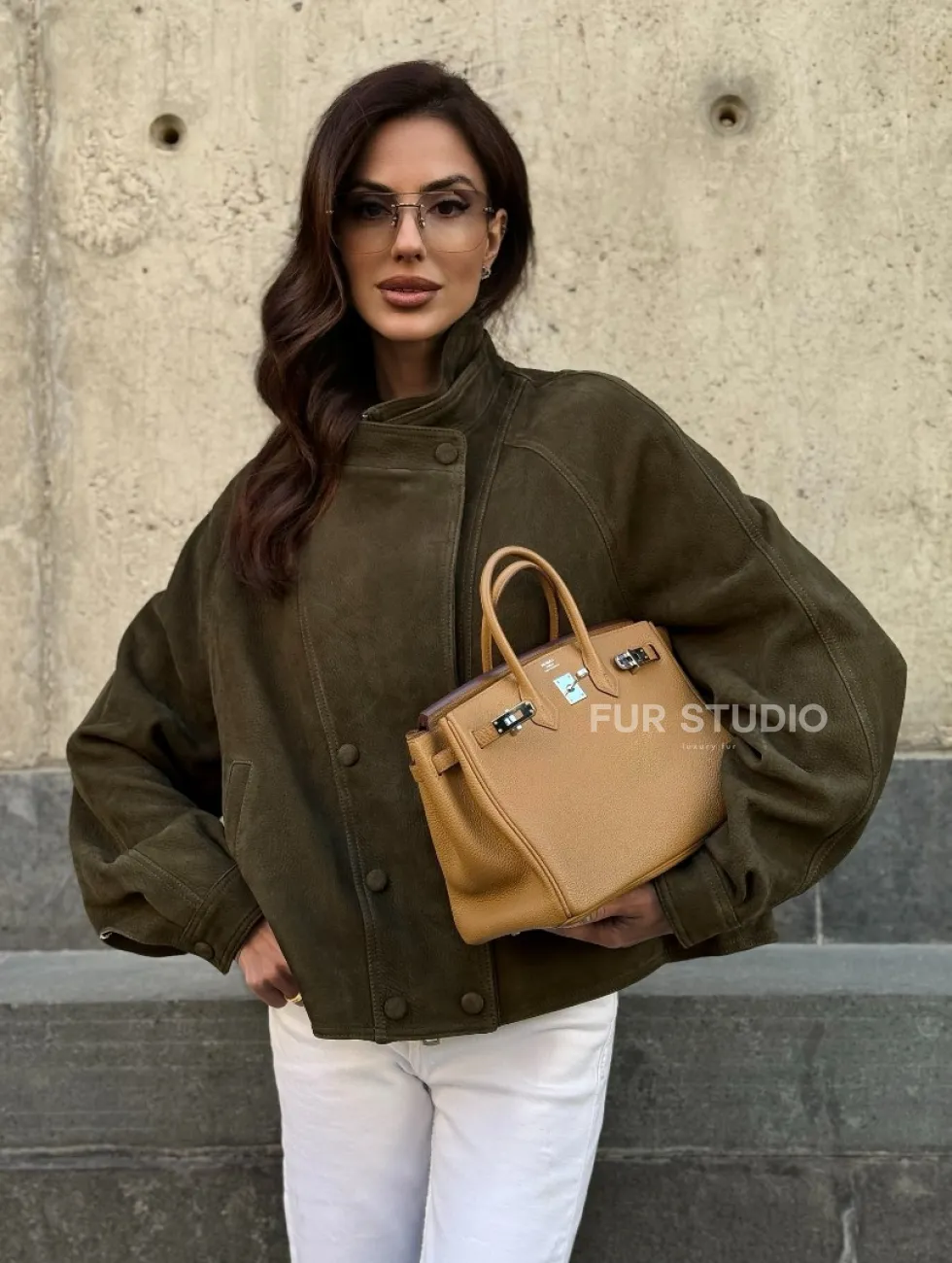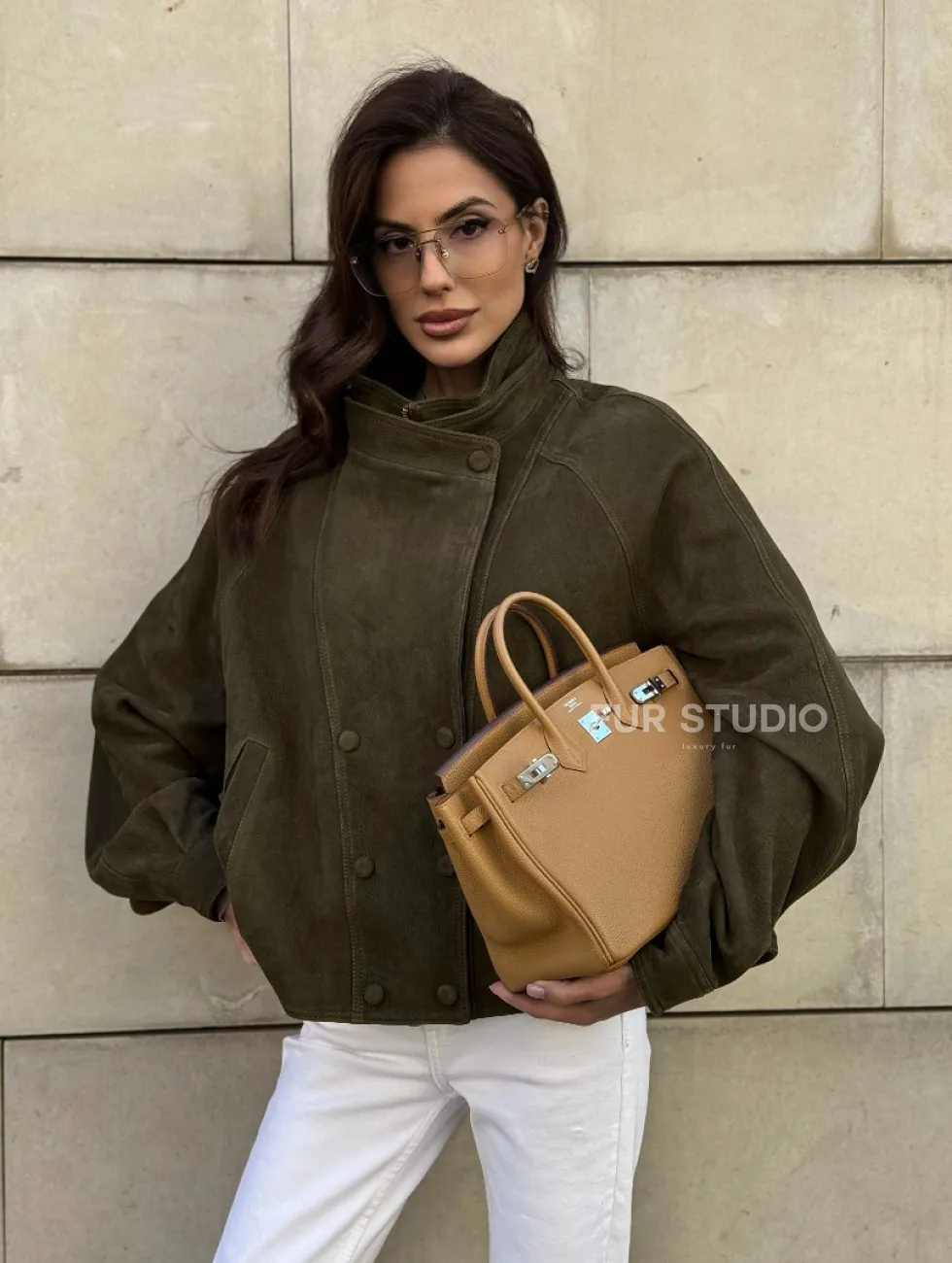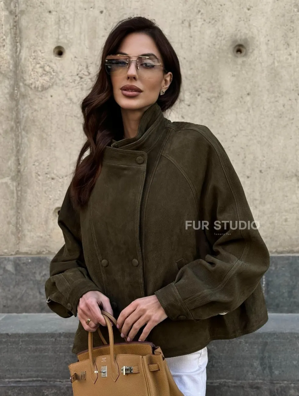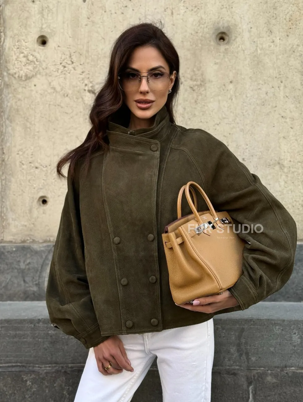 Восхититесь элегантностью и несравненным комфортом с нашей эксклюзивной коллекцией кожаных изделий. Изготовленная из первоклассной натуральной кожи, Женский замшевый блейзер - стойка воротник не только согреет вас в прохладные дни, но и подчеркнет ваш изысканный вкус. Уникальный дизайн и высокое качество делают наши представленные образцы идеальным выбором для утончённых образов.