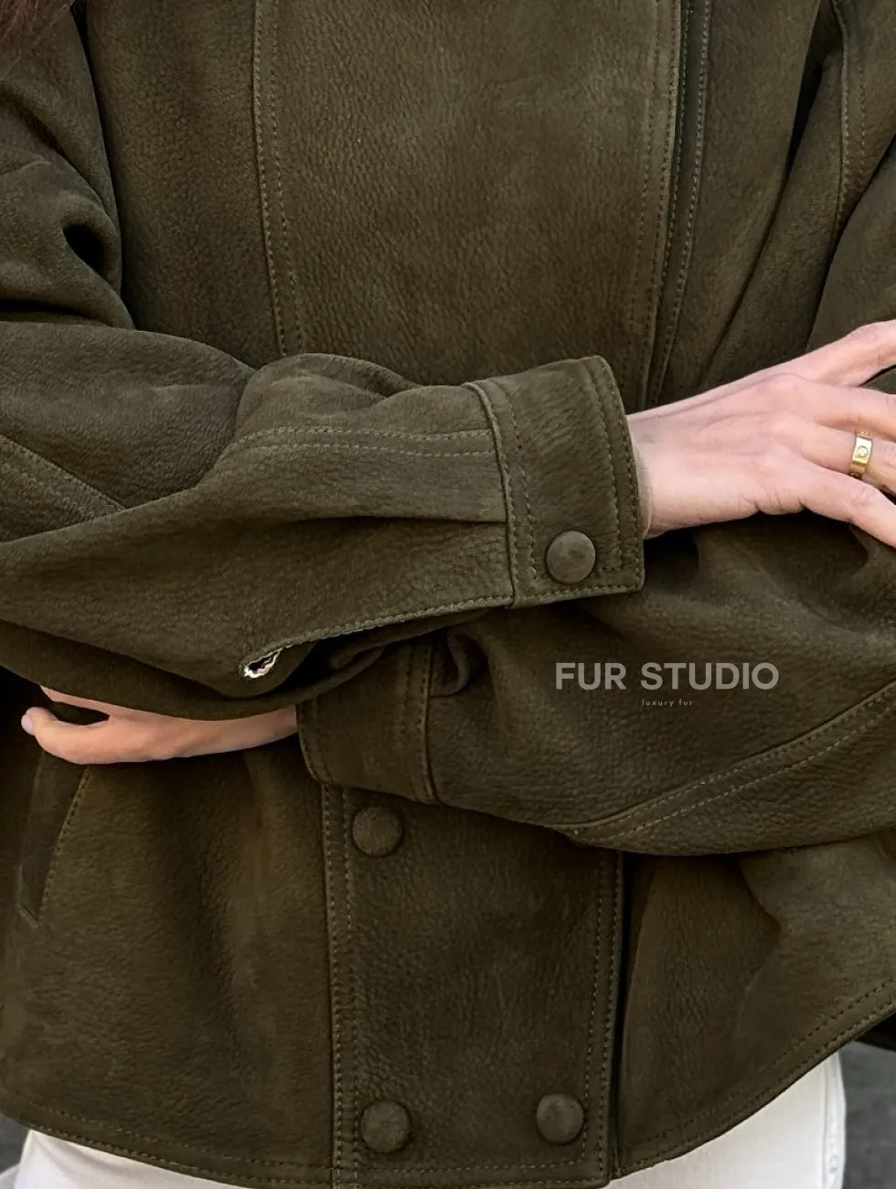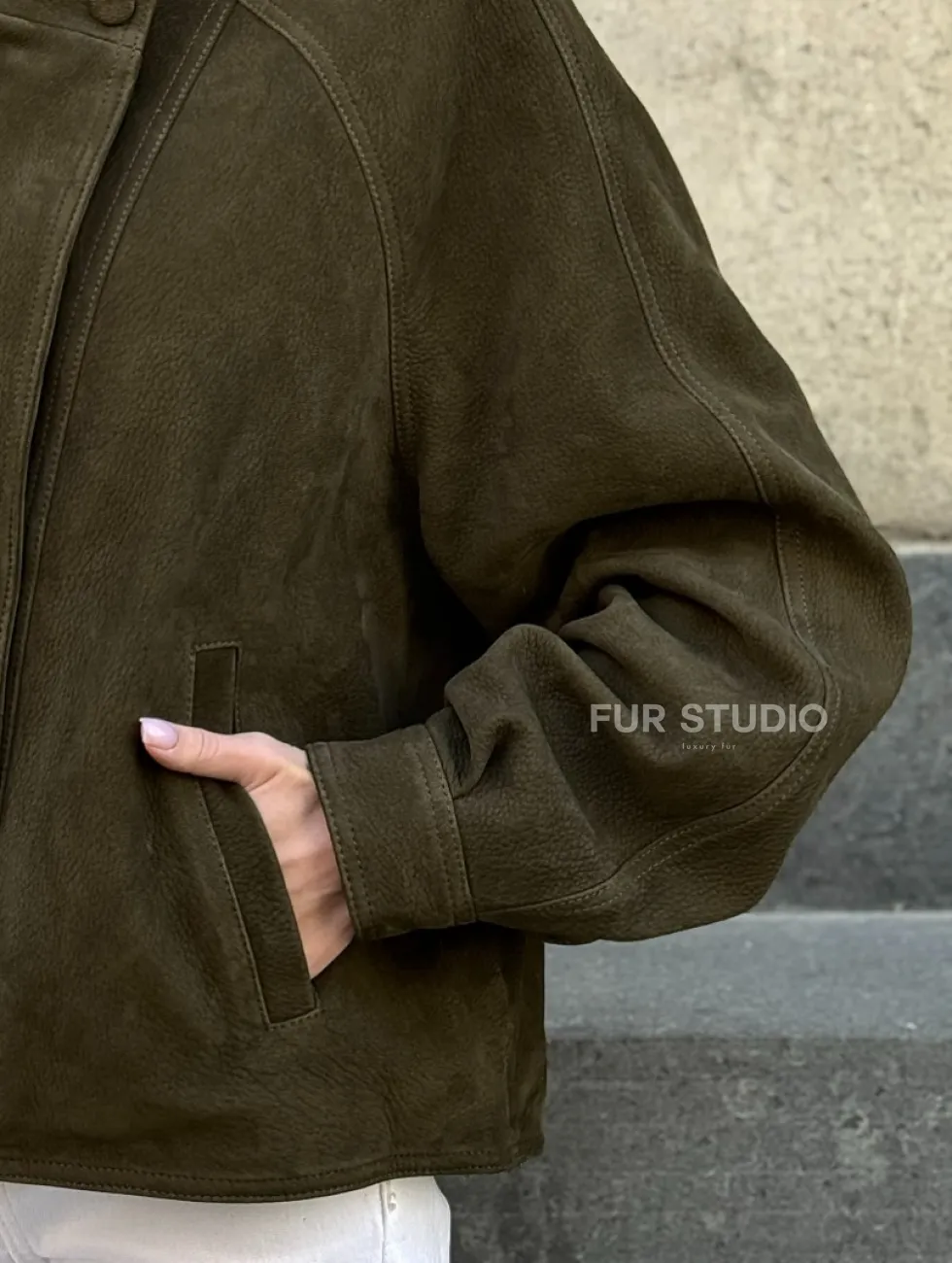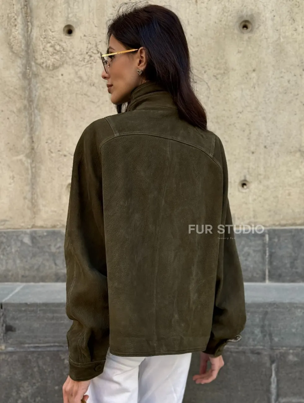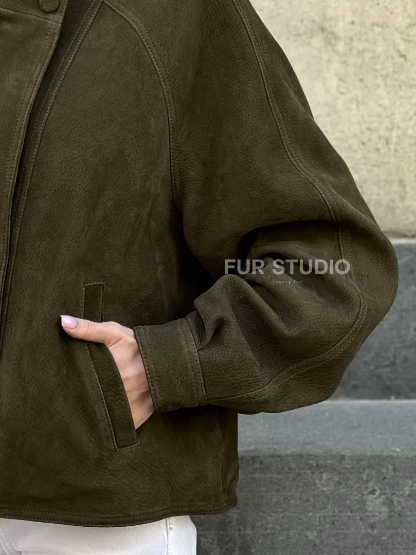 Женский замшевый блейзер - стойка воротник доступна для покупки в нашем шоуруме Furs Studio в Москве, где также предоставляется удобная доставка во все города России.
