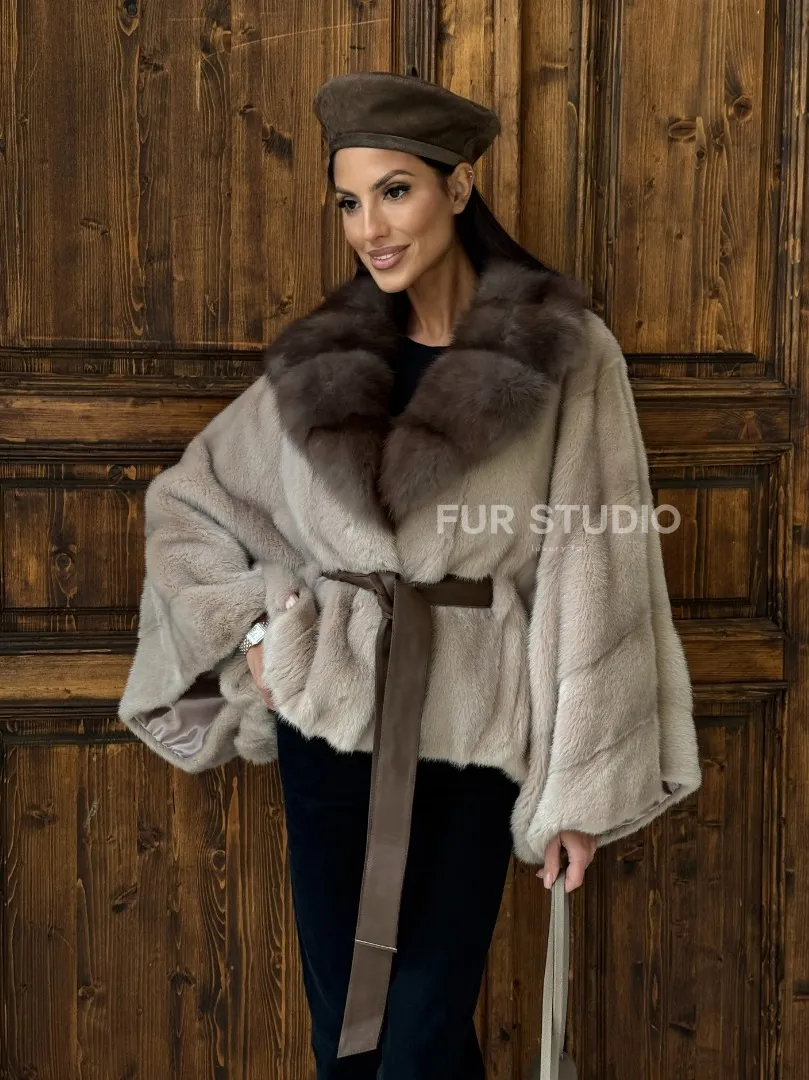 Женское меховое манто из норки Pastel - "Летучая мышь" с воротником из куницы доступна для покупки в нашем шоуруме Furs Studio в Москве. У нас так же есть доставка во все города России. Добавьте немного роскоши в свой гардероб с этой шубой, которая будет служить вам многие годы.