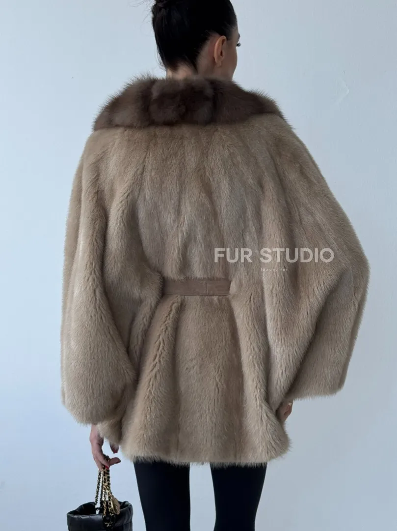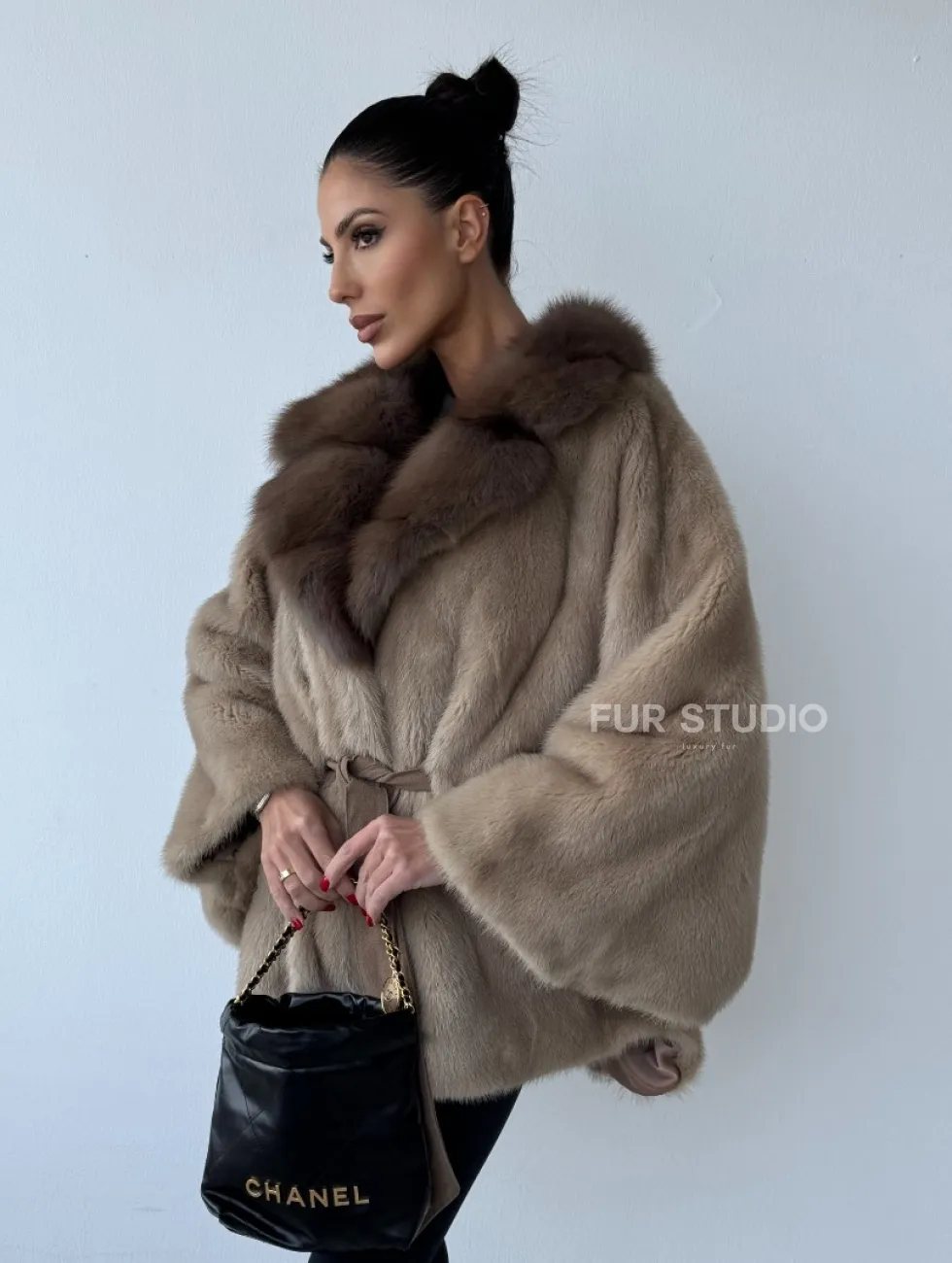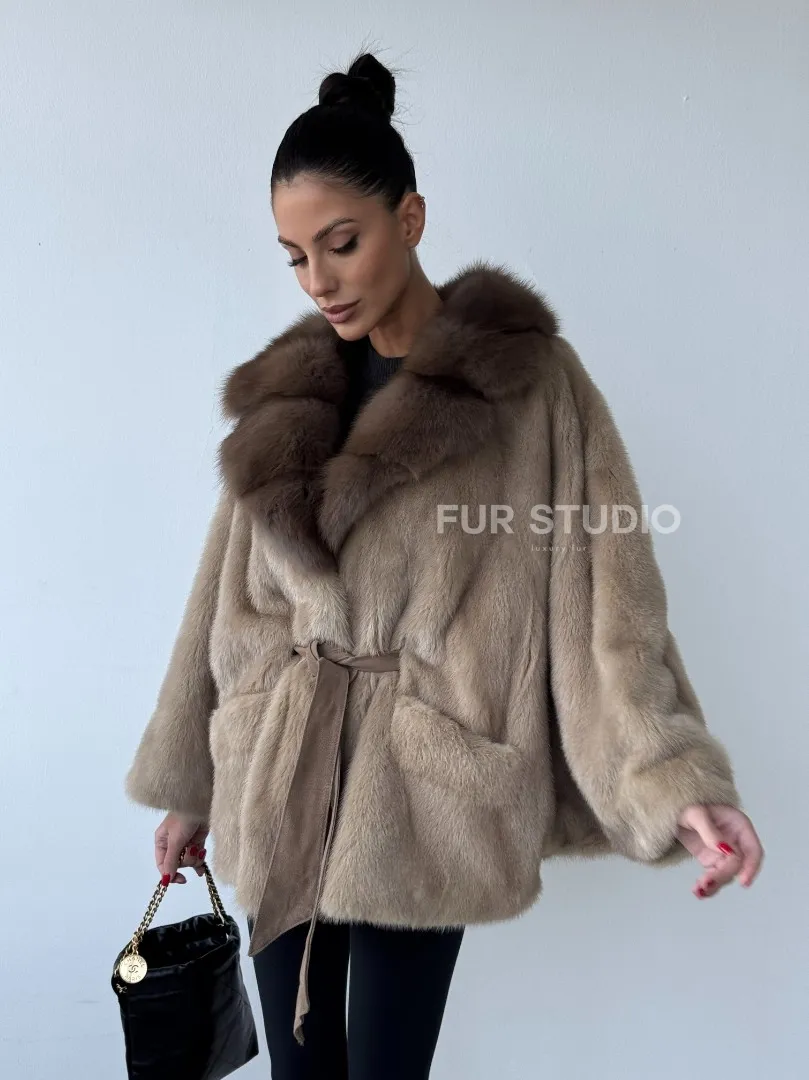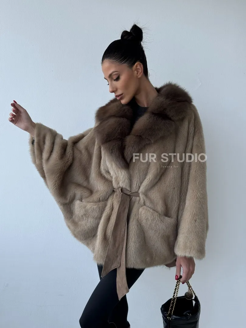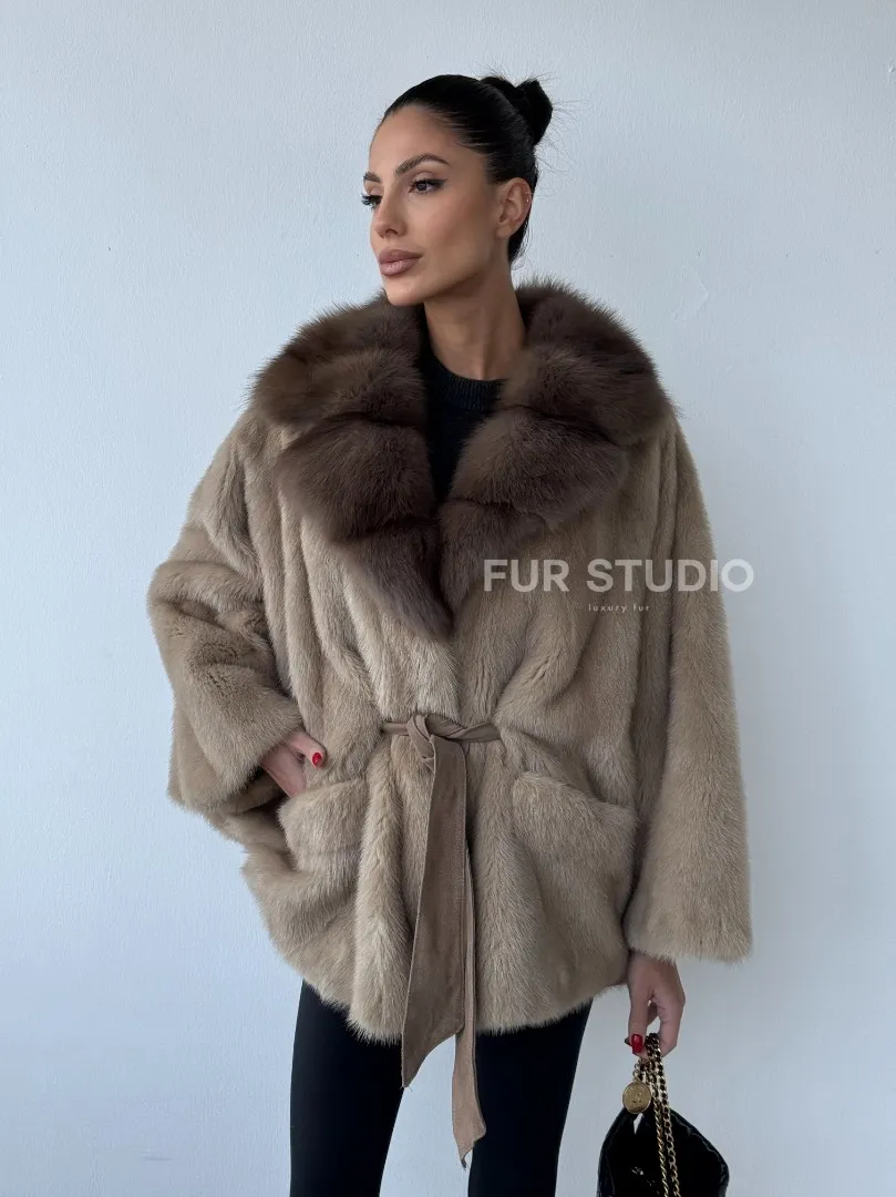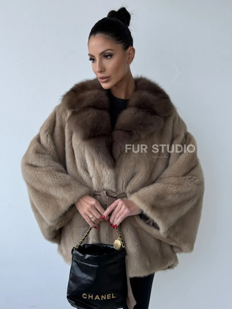 Зимнее пончо из меха норки Pastel с воротником из куницы доступна для покупки в нашем шоуруме Furs Studio в Москве. У нас так же есть доставка во все города России. Добавьте немного роскоши в свой гардероб с этой шубой, которая будет служить вам многие годы.