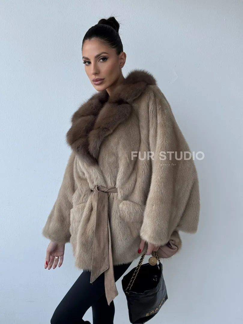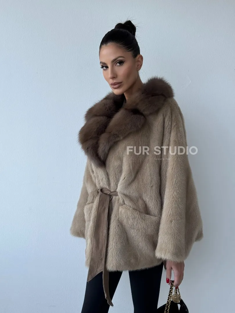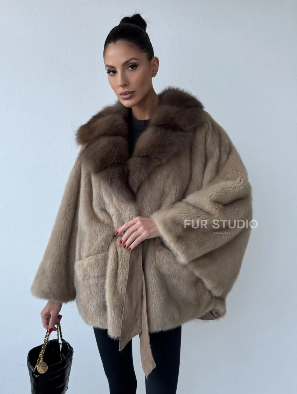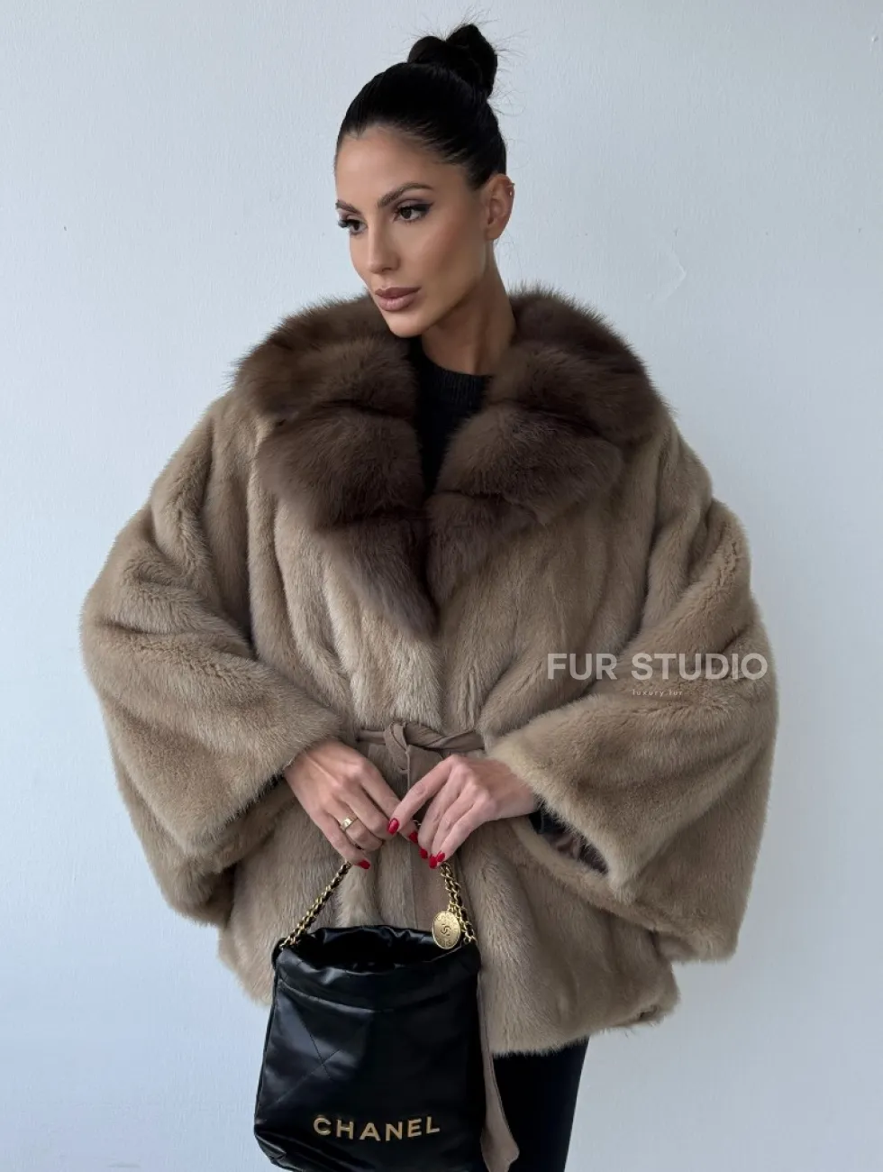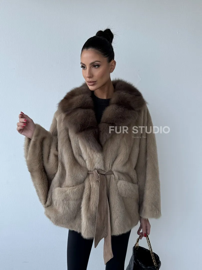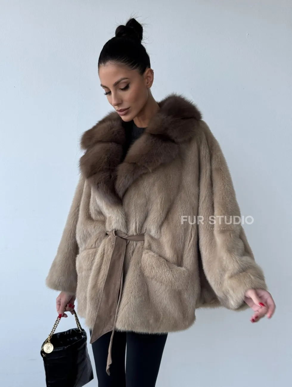 Зимнее пончо из меха норки Pastel с воротником из куницы доступна для покупки в нашем шоуруме Furs Studio в Москве. У нас так же есть доставка во все города России. Добавьте немного роскоши в свой гардероб с этой шубой, которая будет служить вам многие годы.