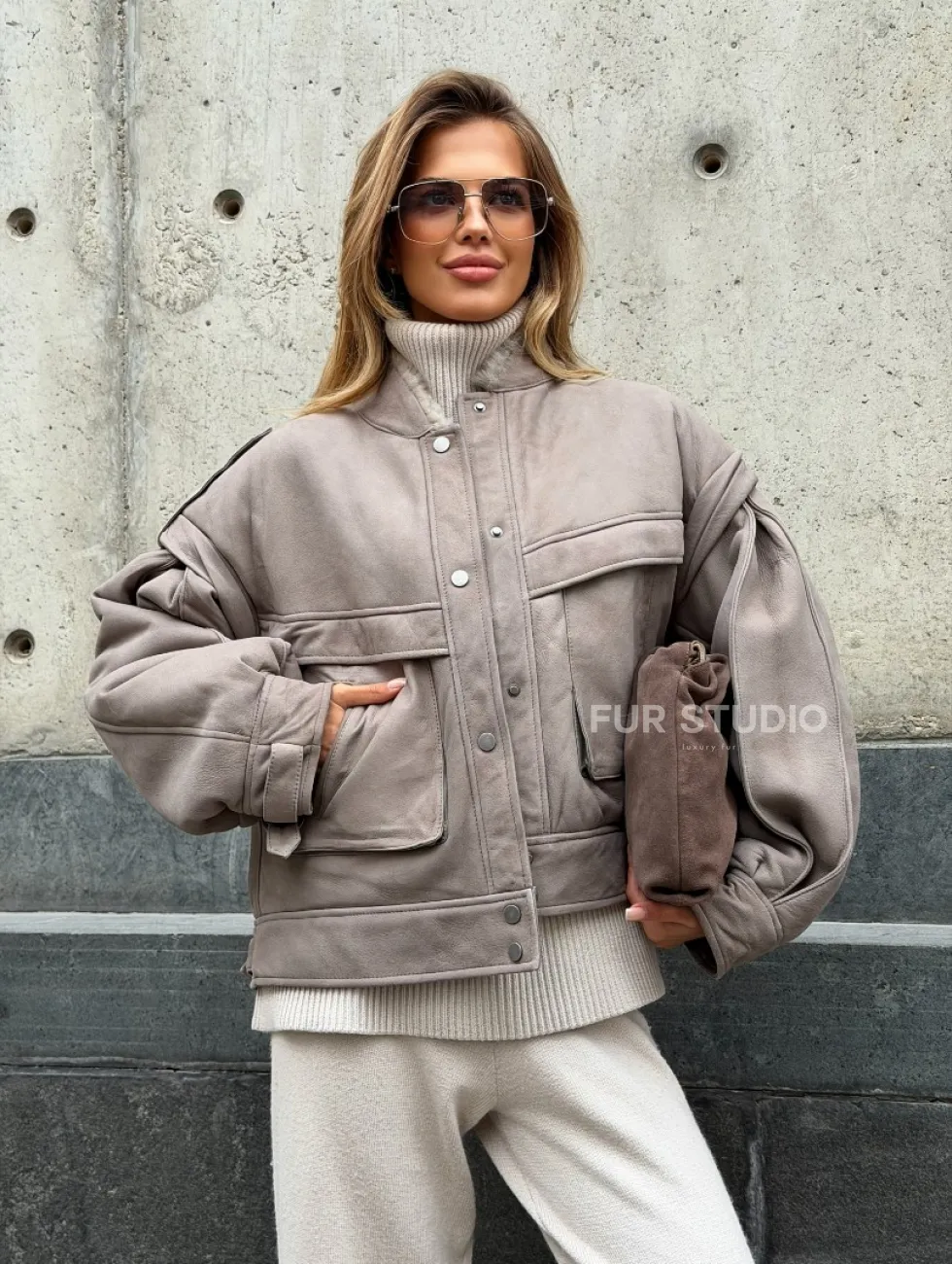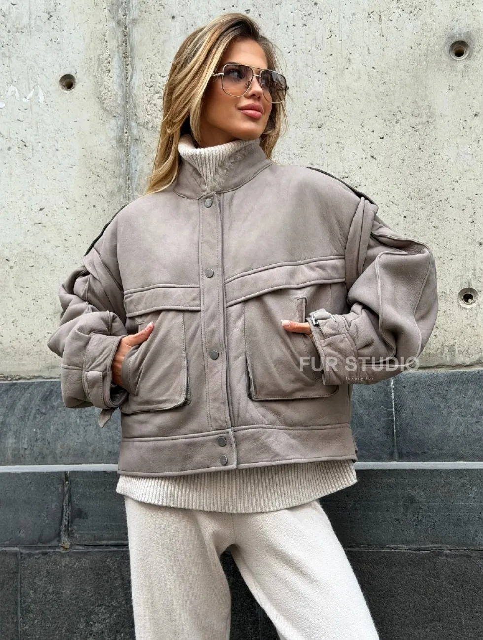 Зимняя дубленка - бомбер. Модель предлагается в размерах от 42 до 48. Оптимальная длина моделей 50-55 см подчеркивает линии вашей фигуры. Эта дубленка станет неотъемлемой частью гардероба для тех, кто предпочитает роскошь и утонченность натуральной кожи.