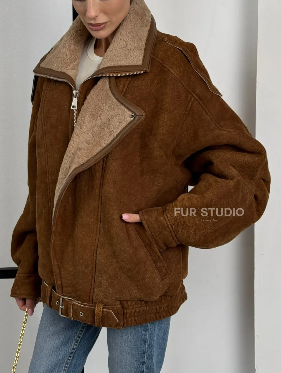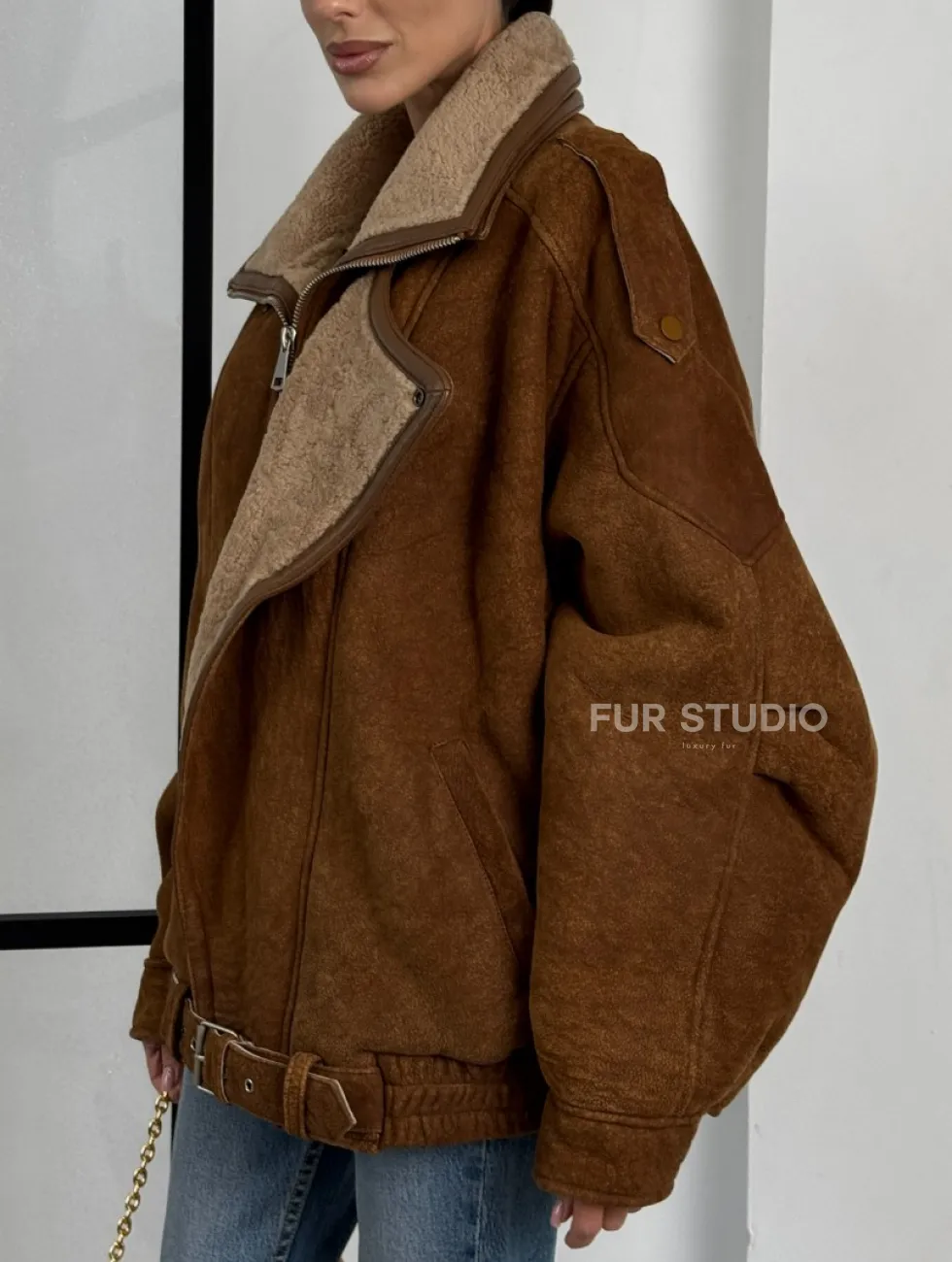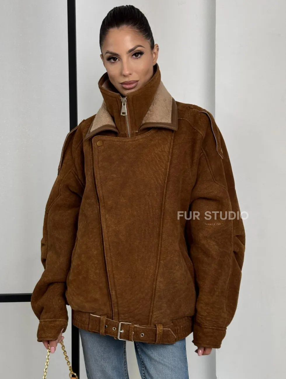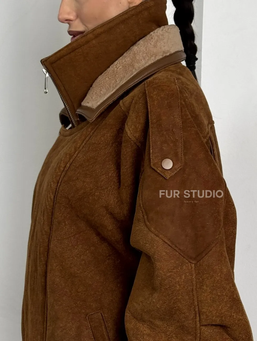 Зимняя натуральная замшевая куртка - дубленка с лацканами доступна для покупки в нашем шоуруме Furs Studio в Москве, а также предлагается удобная доставка во все города России. Обогатите свой гардероб этой дубленкой, которая прослужит вам многие годы, добавив немного роскоши в ваш повседневный образ.
