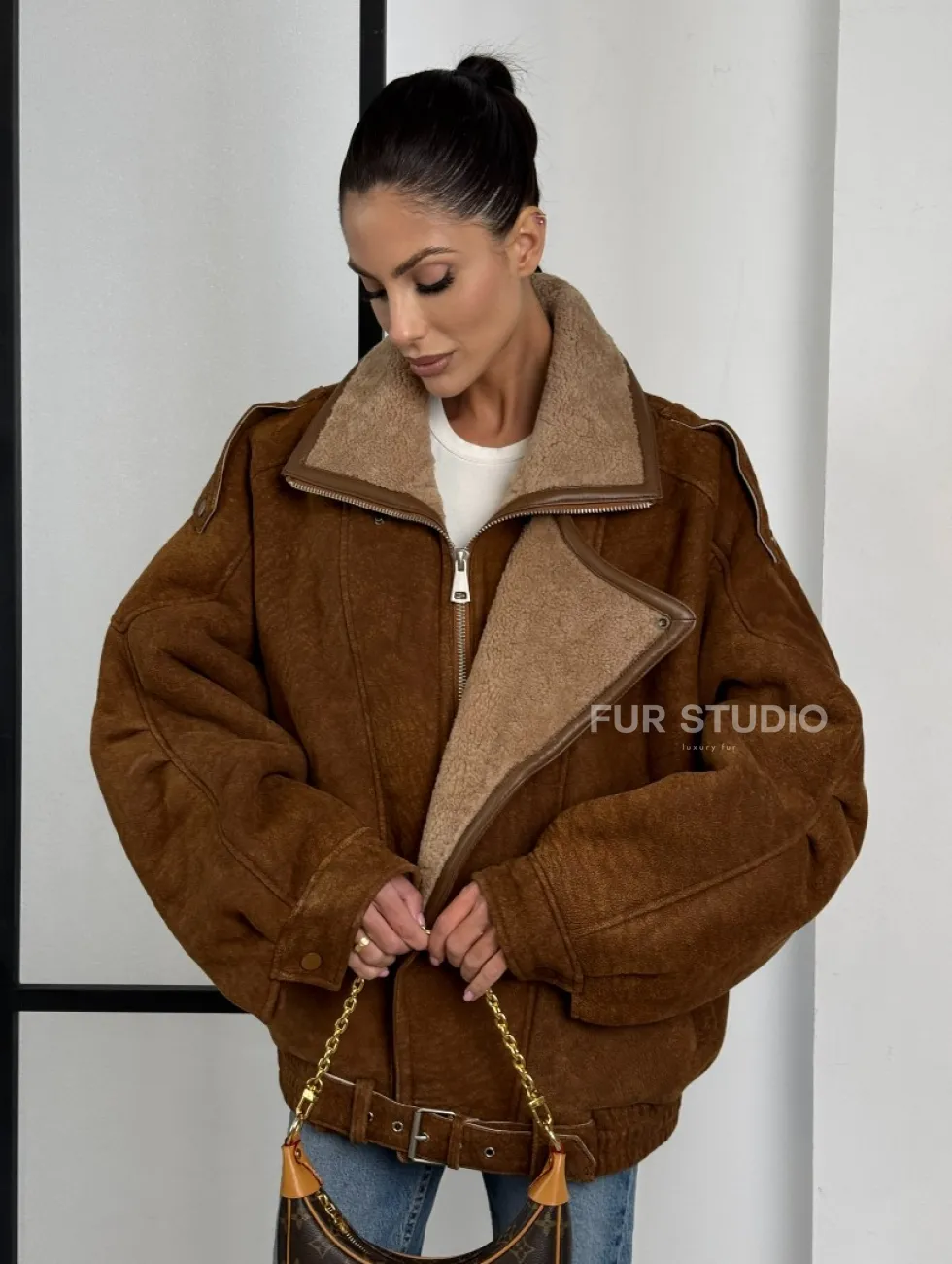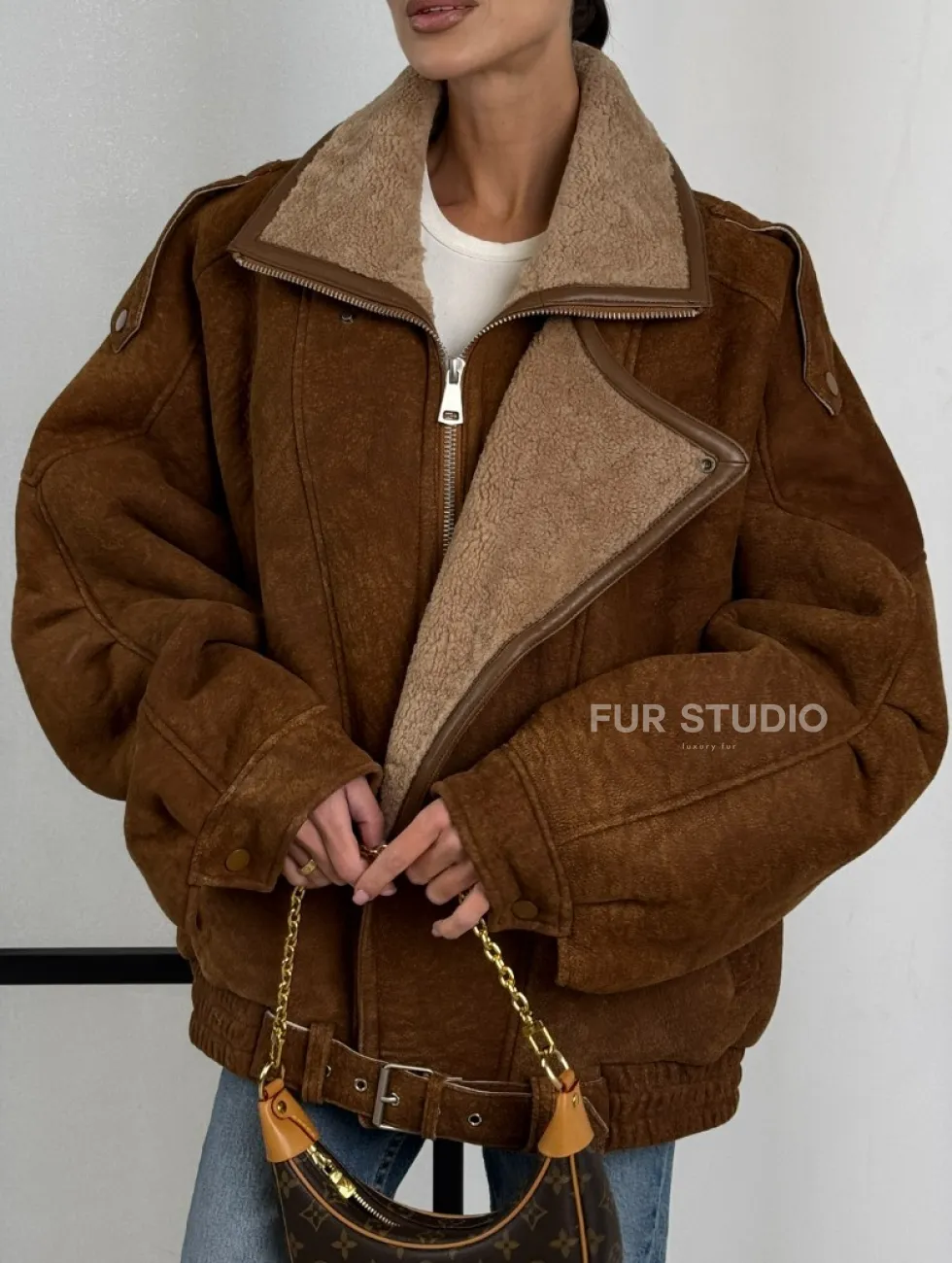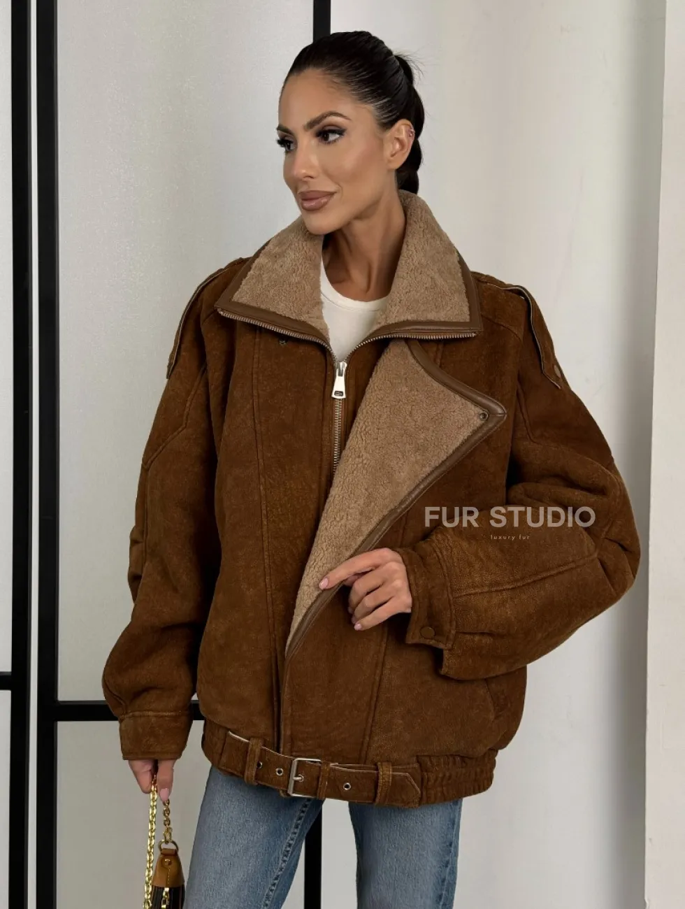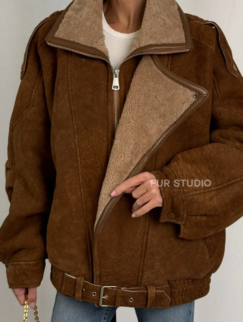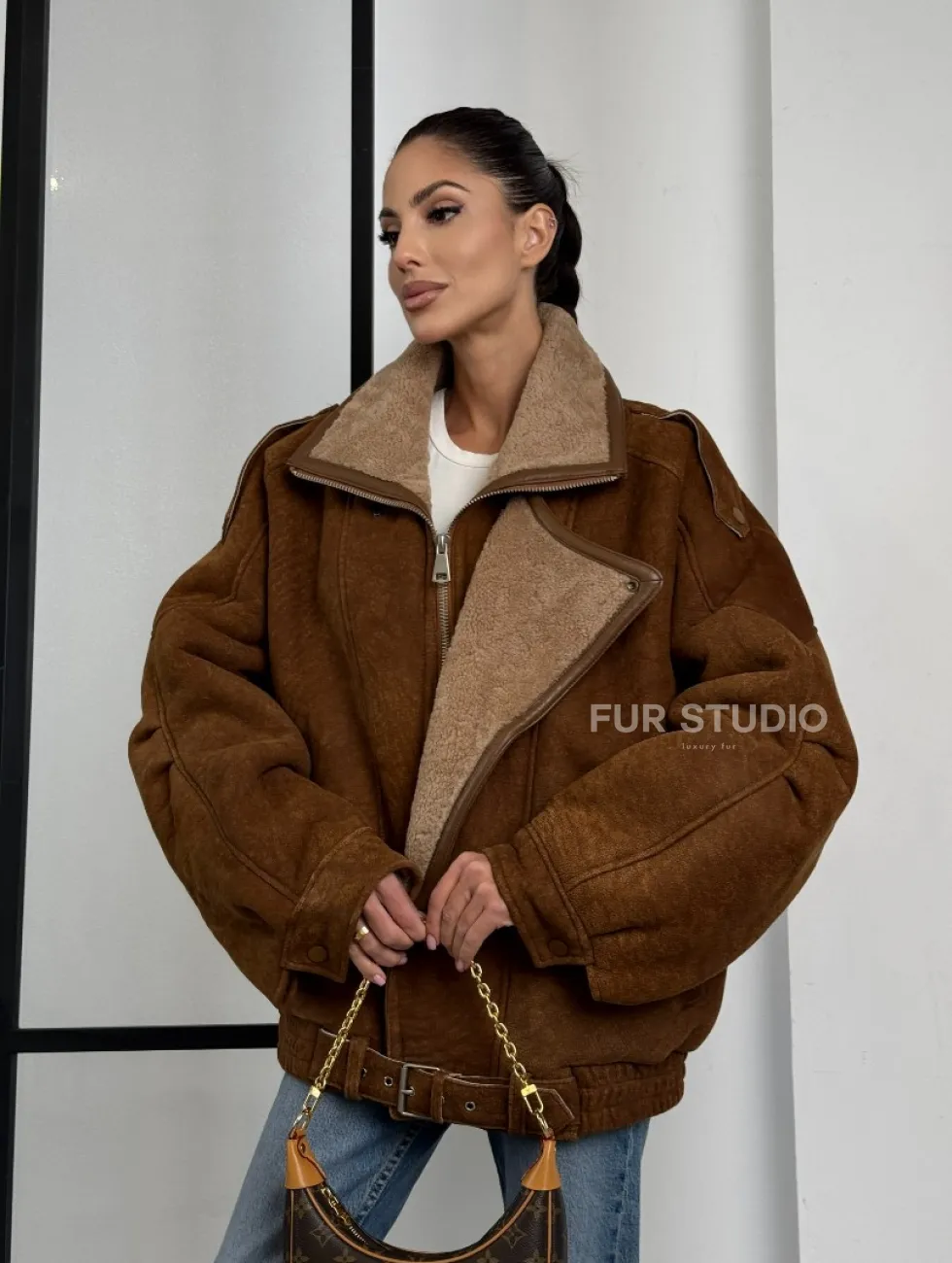 Зимняя натуральная замшевая куртка - дубленка с лацканами доступна для покупки в нашем шоуруме Furs Studio в Москве, а также предлагается удобная доставка во все города России. Обогатите свой гардероб этой дубленкой, которая прослужит вам многие годы, добавив немного роскоши в ваш повседневный образ.