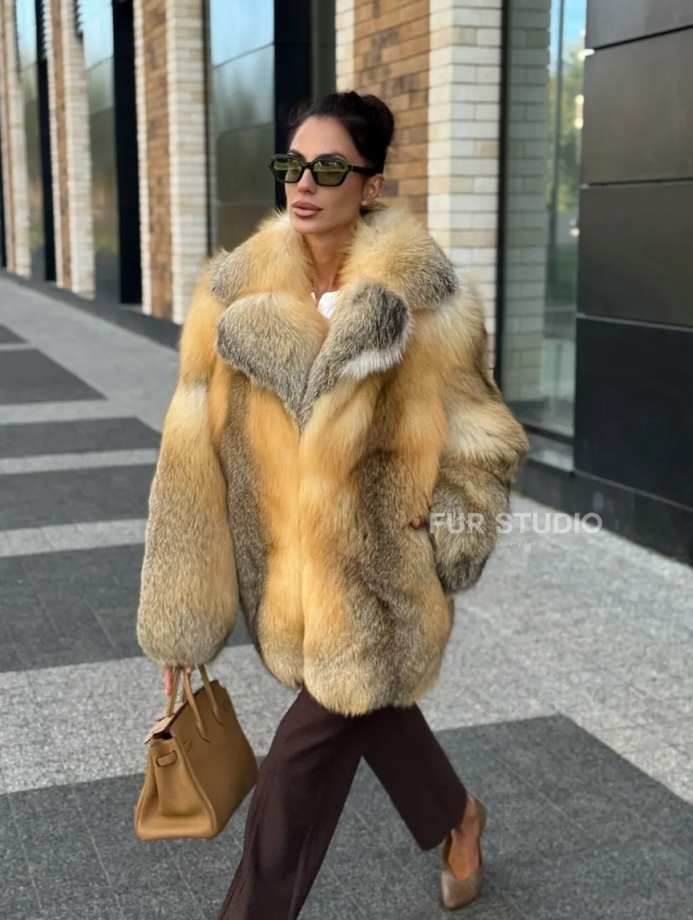 Золотистая шуба из натурального меха лисы цельные пластины доступна для покупки в нашем шоуруме Furs Studio в Москве. У нас так же есть доставка во все города России. Добавьте немного роскоши в свой гардероб с этой шубой, которая будет служить вам многие годы.